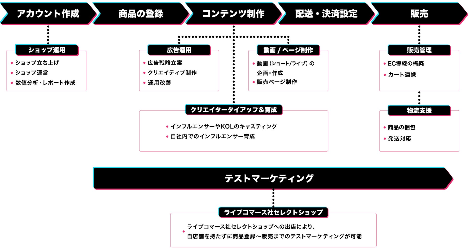 事業内容: TikTok Shop運営事業、ライブコマース事業、インフルエンサーキャスティング事業、
