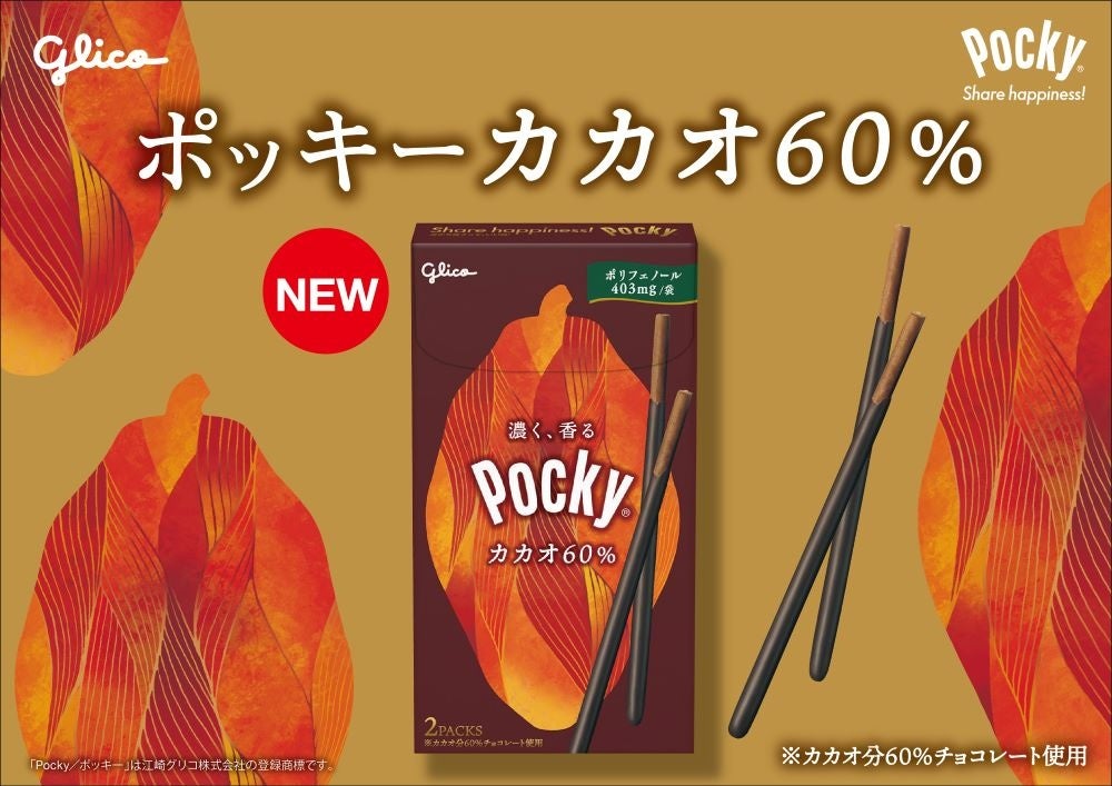 「ポッキー」は、その形状と楽しまれるシーンから「Share happiness!~分かち合うって、いいね~」をメッセージに掲げ、分け合うことで生まれるハッピーな気持ちをより多くの方に実感していただきたいと考えて活動しています。「ポッキーカカオ60%」は近年チョコレートなどのお菓子に対しても高まる健康意識や、大人たちが好むビターな味わいへのニーズに応えることで、より多くの方がおいしく「ポッキー」を分け合って、楽しいひと時を過ごしていただきたいという思いから、カカオにこだわり、ひかえめな甘さで大人を中心に楽しんでいただける味わいに仕上げました。