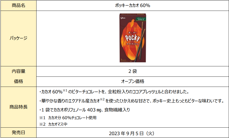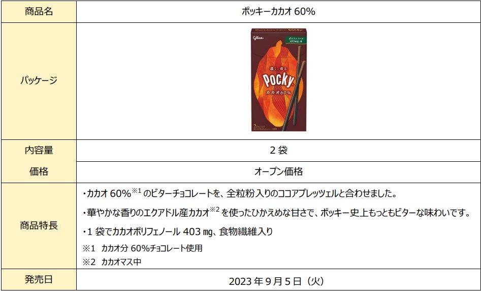 ポッキー史上もっともビター!「ポッキーカカオ60%」 9月5日(火)より新発売