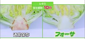 ※外部機関 (日本ラボテック株式会社) での実験結果 / 一般ジッパーバッグとフォーサ真空バッグに食材を入れ家庭用冷蔵庫で10日間保存した結果 / 保存期間10日間は消費期限を保証するものではありません / 結果は保存状態・食材により異なります