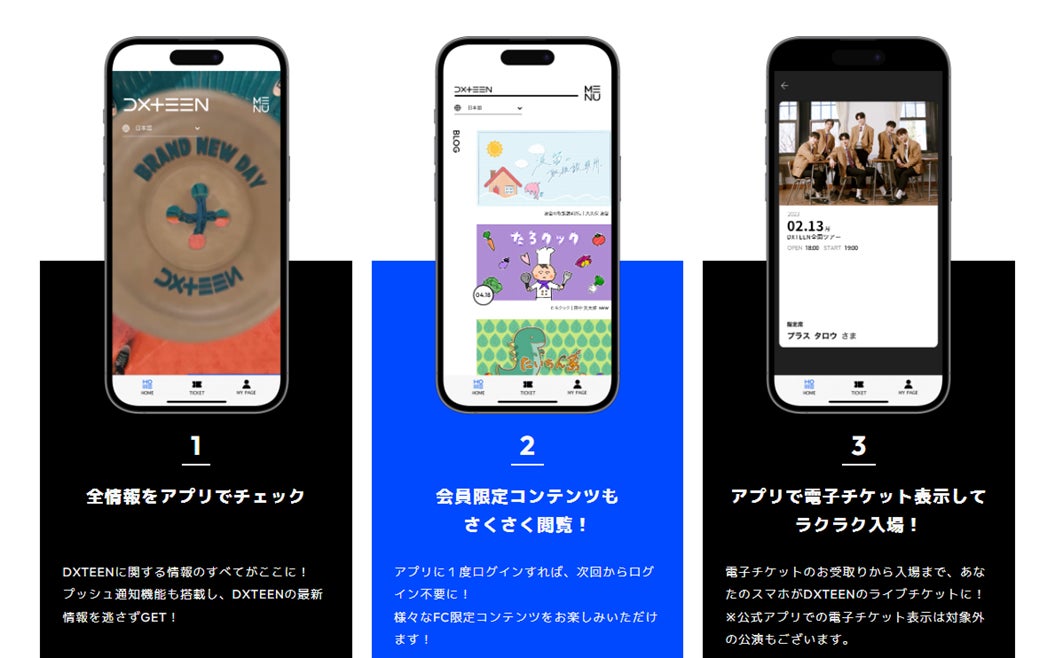 DXTEEN OFFICIAL FANCLUBのコンテンツが閲覧できるなど、DXTEEN をより身近に感じられるアプリとなっております。