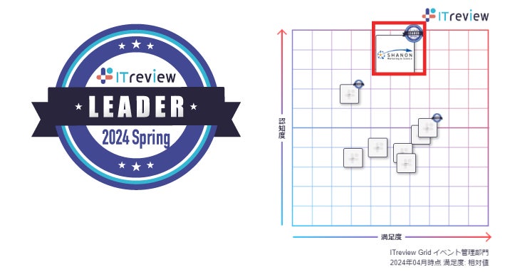 株式会社シャノン(本社:東京都港区、代表取締役社長:中村 健一郎、証券コード:3976、以下シャノン) は、シャノンが提供する統合型マーケティング支援システムである「SHANON MARKETING PLATFORM」がアイティクラウド株式会社(本社:東京都港区、代表取締役社長 兼 CEO:黒野源太、以下「アイティクラウド」)主催「ITreview Grid Award 2024 Spring」のイベント管理部門で最高位の「Leader」を受賞したことをお知らせいたします。