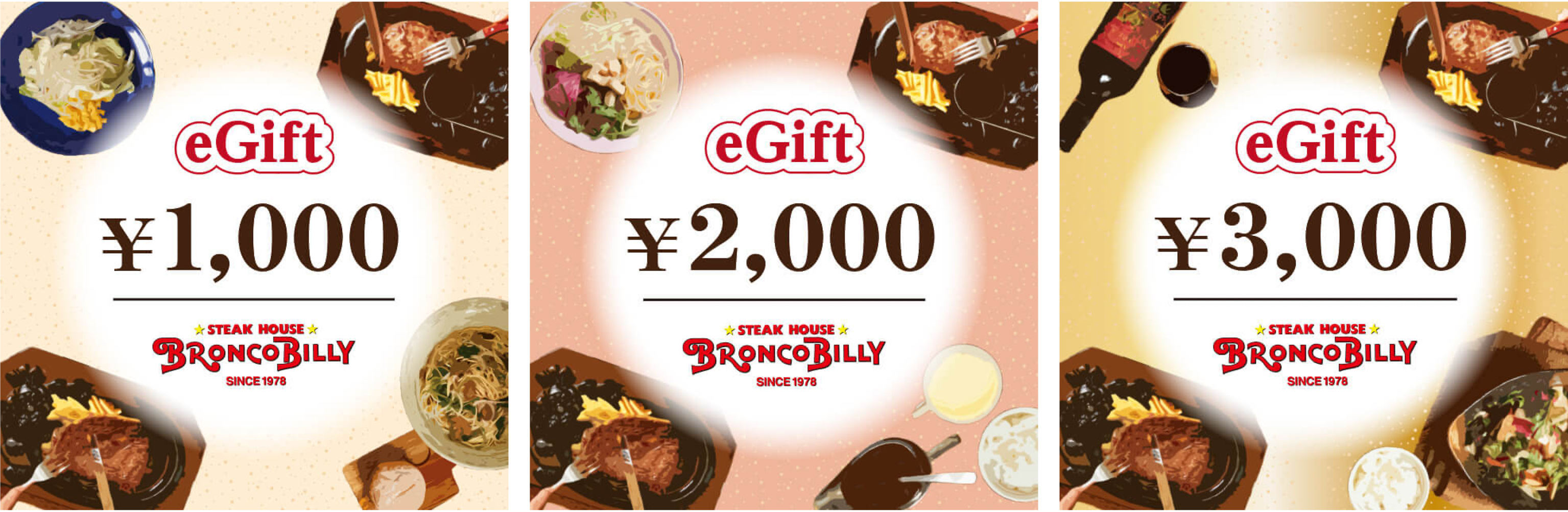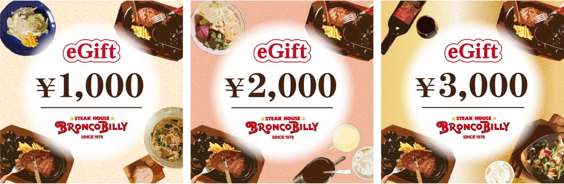 「ブロンコビリーギフト券」1,000円券/1,000円、2,000円券/2,000円、3,000円券/3,000円(全て非課税)