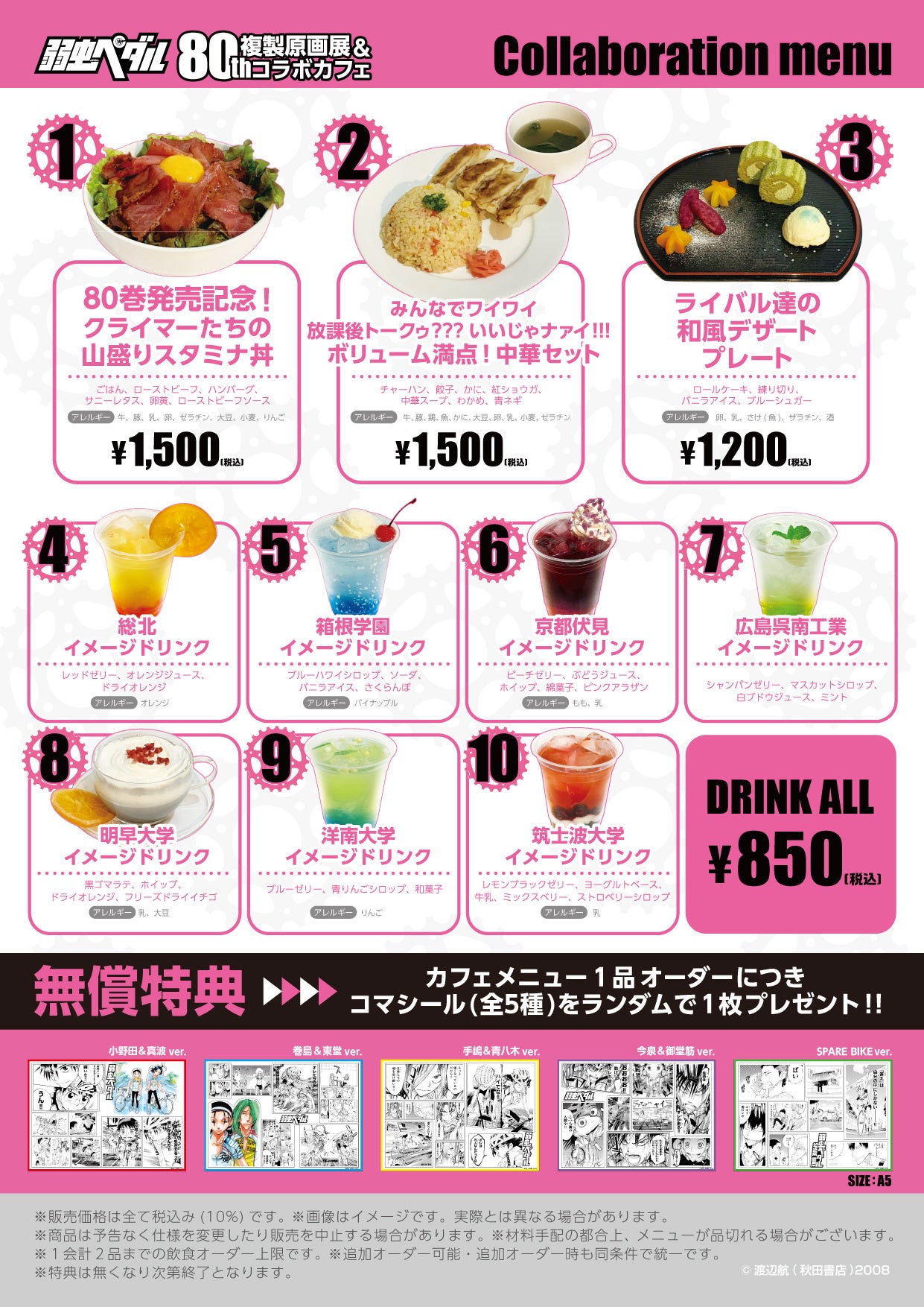 節目となる80巻発売、TVアニメ放送第5期となる『弱虫ペダル LIMIT BREAK』の放送開始、そしてサイドストーリーを渡辺航先生自らが描く『弱虫ペダル SPARE BIKE』が10周年を迎えたこのタイミングに、熱い読者・ファンの皆様と一緒に興奮を分かち合う複製原画展&コラボカフェの開催が決定!