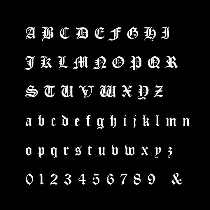 中世ヨーロッパを彷彿させる、このリングだけの専用フォントになります。