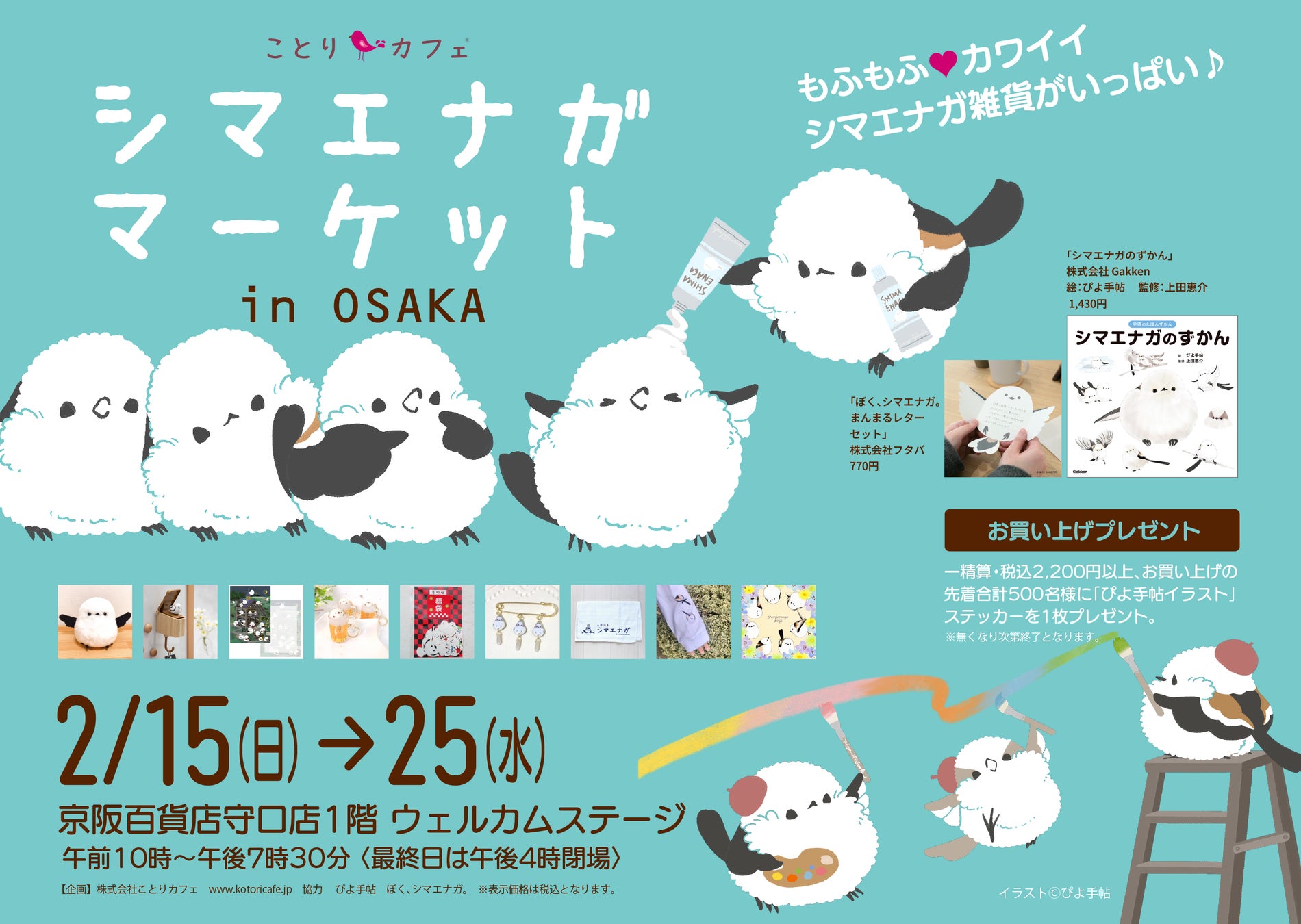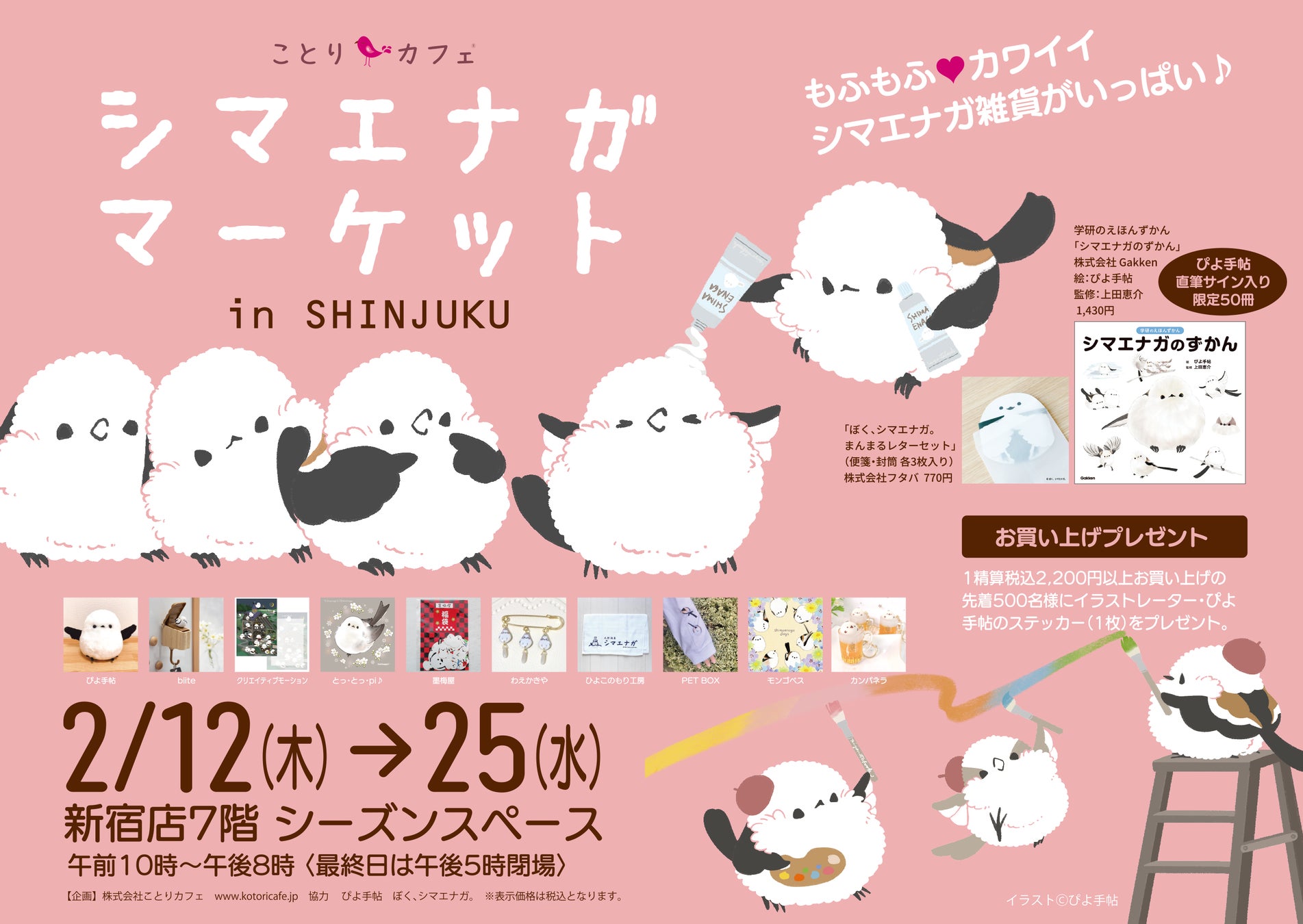 店内は真っ白な可愛いシマエナガグッズやぴよ手帖さんイラストの学研のえほんずかん「シマエナガのずかん」などの書籍も販売します。