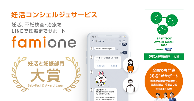 ファミワンは、過去に開催された 「BabyTech® Award Japan 2020 powered by DNP 大日本印刷」で妊活と妊娠部門の大賞を受賞しています。