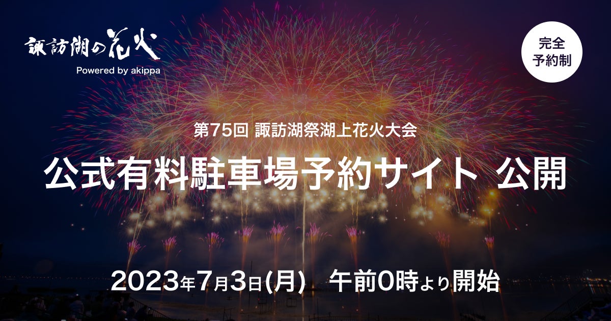 第75回諏訪湖祭湖上花火大会 公式有料駐車場 予約サイトを公開。予約は2023年7月3日(月)午前0時から開始。