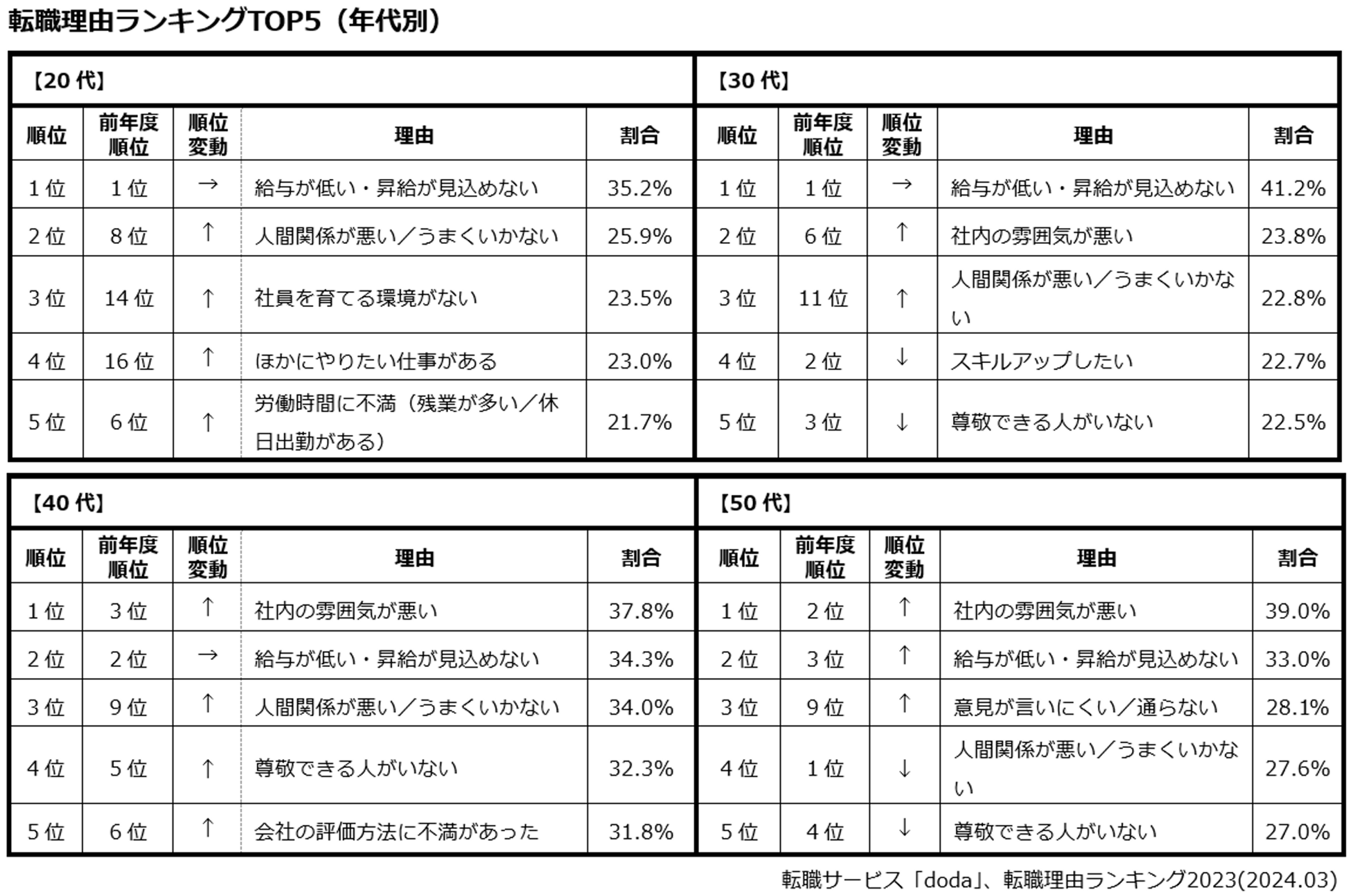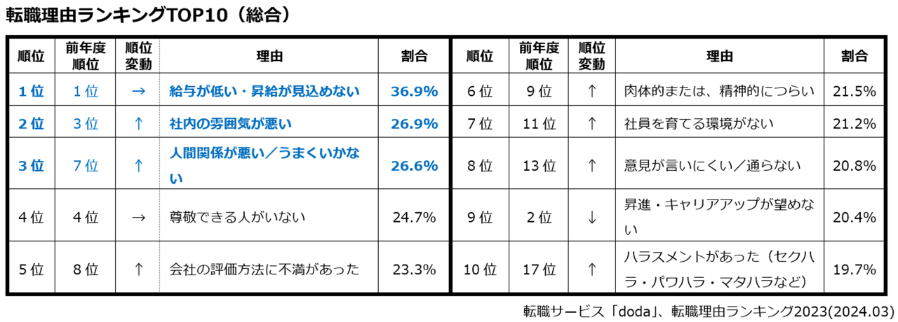 「転職理由ランキング」結果詳細:https://doda.jp/guide/reason/