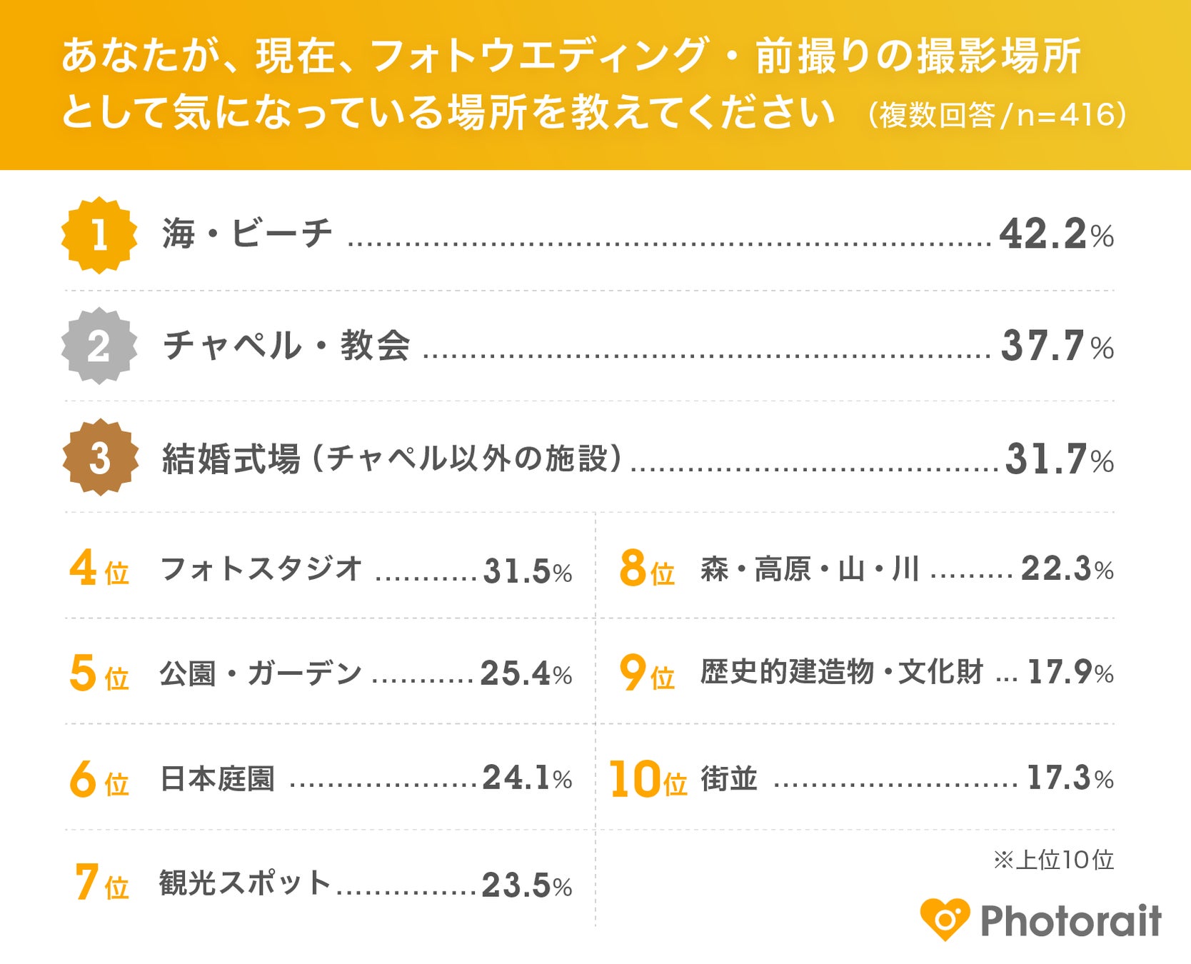 有効回答:2025年1月~2025年12月に結婚予定且つフォトウエディング・前撮りを実施予定の18~49歳の416名