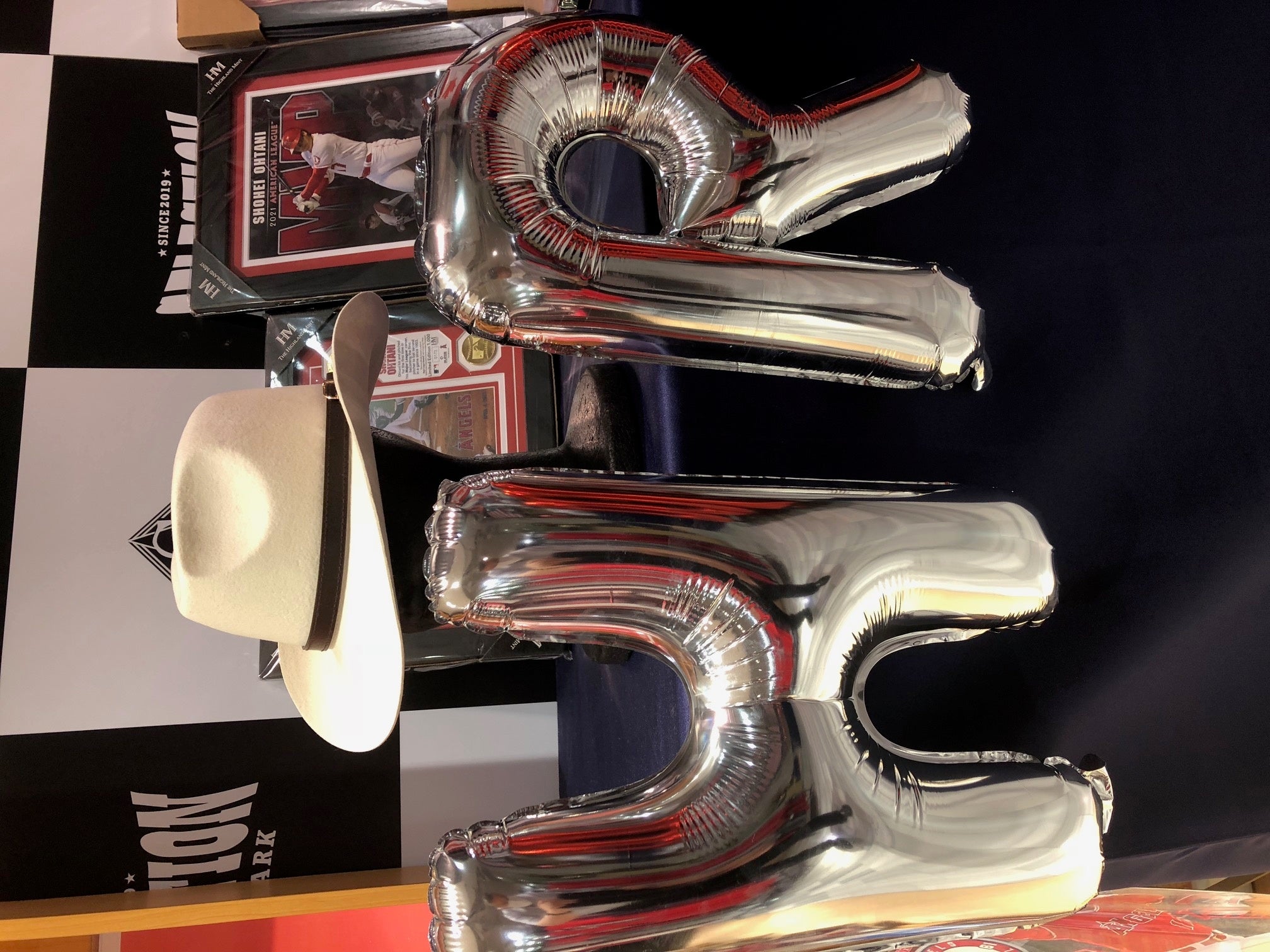 セレクション大阪店では、エンジェルス大谷選手のMLB日本人最速100号ホームランを記念して、大谷選手のグッズ販売コーナーを大幅に拡充します。アメリカでも入手困難な直筆サイン入りグッズをはじめ、二刀流のフォトプレート、ユニフォーム、キャップなど多数の商品を展示販売しております。更に今期、エンジェルスの選手がホームランを打った際、ベンチ内で被り盛り上がるカウボーイハット(記念撮影用のレプリカ)も用意しております。