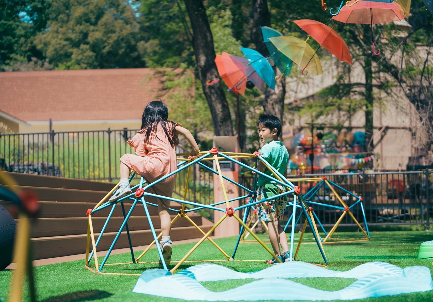 現在開催中の「ムーミン谷とアンブレラ」では、全長200メートル・約1,000本の傘が織りなす圧倒的スケールのアンブレラ回廊と、「入り江のテラス」に新登場したアンブレラオブジェが幻想的な空間を演出します。色彩あふれるアンブレラの下で、ムーミンバレーパークならではの特別なひとときをお楽しみください。