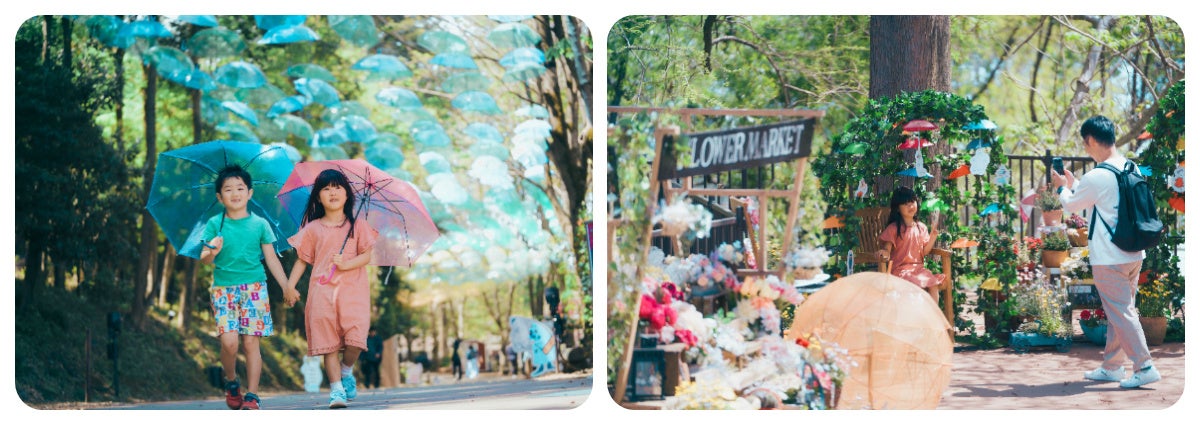 全長200メートル、約1,000本の傘が織りなす圧倒的スケールのアンブレラ回廊と、今年はさらに、『入り江のテラス』に新たにアンブレラオブジェが登場し、幻想的な空間を演出。