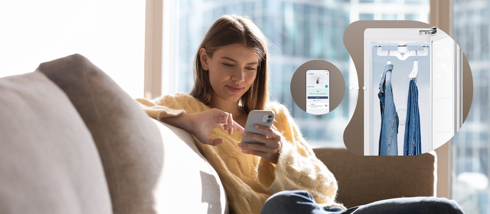 搭載されているコースだけでなく、「LG ThinQ®」アプリ経由で、12種類のコースの中から(※6)、自分好みのコースを追加ダウンロードすることができ、ライフスタイルに合わせてLG Stylerを自由にアップデートできます。また、アプリからコース選択や、仕上がり時間の確認ができるため、いつでもどこでもLG Stylerに入れた衣服をモニタリングできます。
