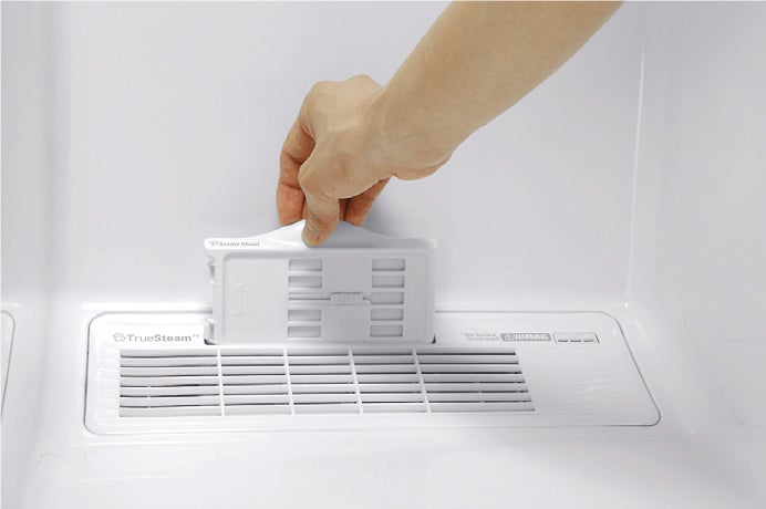 アロマフィルターに専用のアロマシートや、お好みの香水を吹きかけたコットンを入れて、衣類に香りを付けることができます。