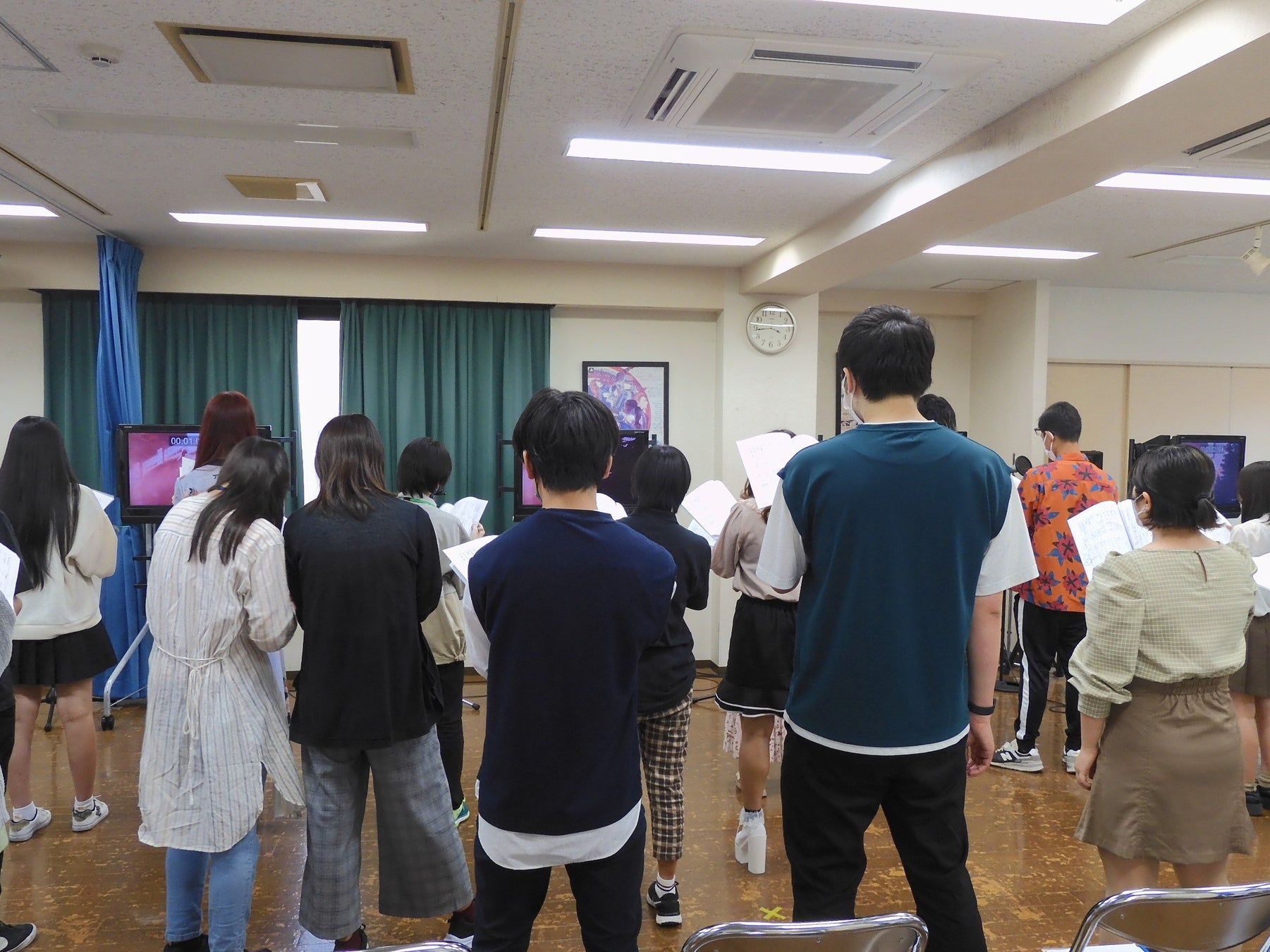 モニターの前にいる在校生が、マイクの誘導や声を入れるタイミングを教えてくれます。また、在校生から積極的に参加者の皆さんへアドバイスやフォローをおこなうので、アフレコ初挑戦の方も安心です。
