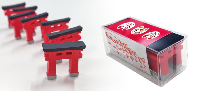 輪切りにするとミニチュア鳥居に。飾って楽しい消しゴムです。