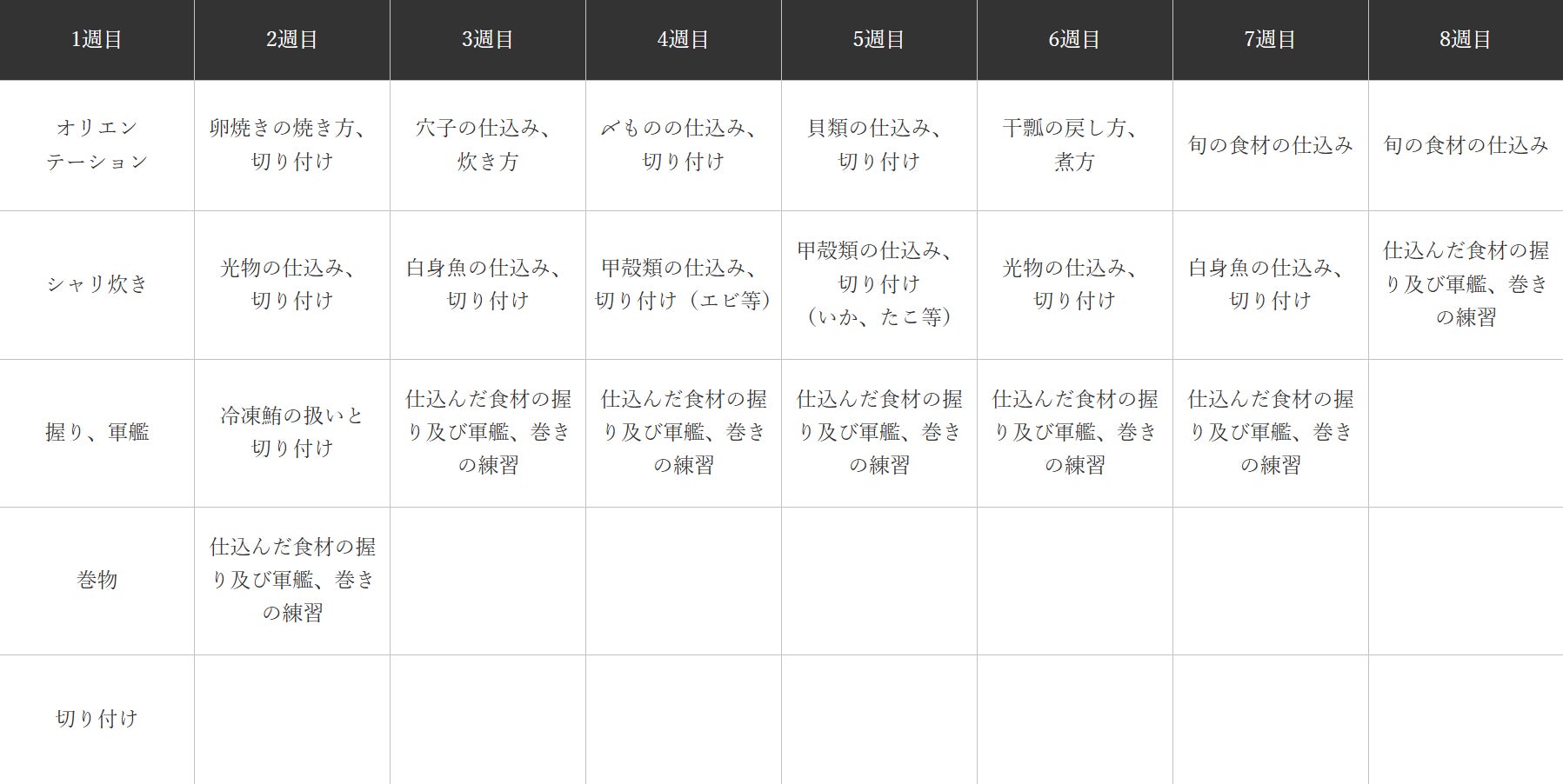■東京寿司職人育成アカデミー「夜間コース」講義内容
