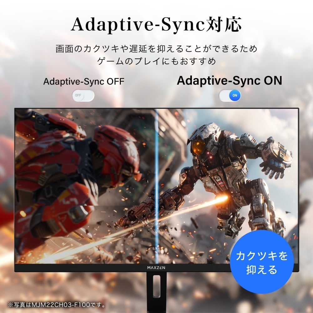映像のカクつきを抑えるAdaptive-Sync機能を搭載し、壁掛けやアーム取り付けが可能なVESAマウント対応で省スペースに使いやすいPCモニターをお届けします。