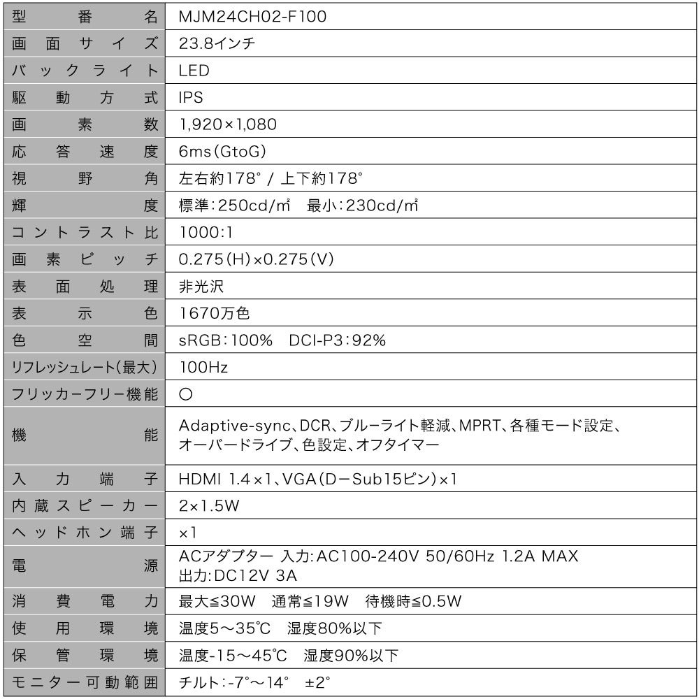 ※搭載しているパネルはMJM22CH03-F100がVAパネル、MJM24CH02-F100とMJM27CH02-F100がIPSパネルとなっております。