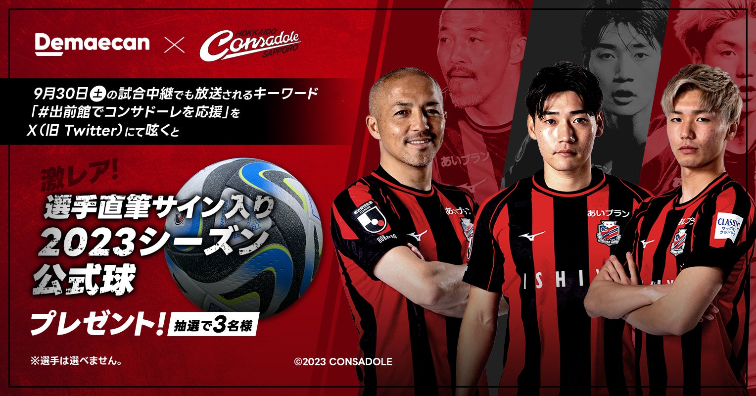2023年9月30日(土)に行われる「明治安田生命J1リーグ 北海道コンサドーレ札幌vs柏レイソル戦」にて、札幌テレビ放送による試合中継とX(旧Twitter)を連動したプレゼント企画を実施いたします。