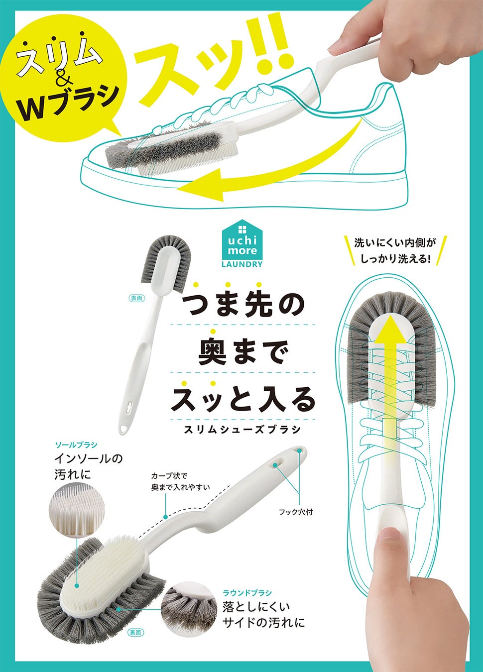 スリム&Wブラシで洗いにくい靴の内側がしっかり洗える!「スリムシューズブラシ」を3月3日より発売