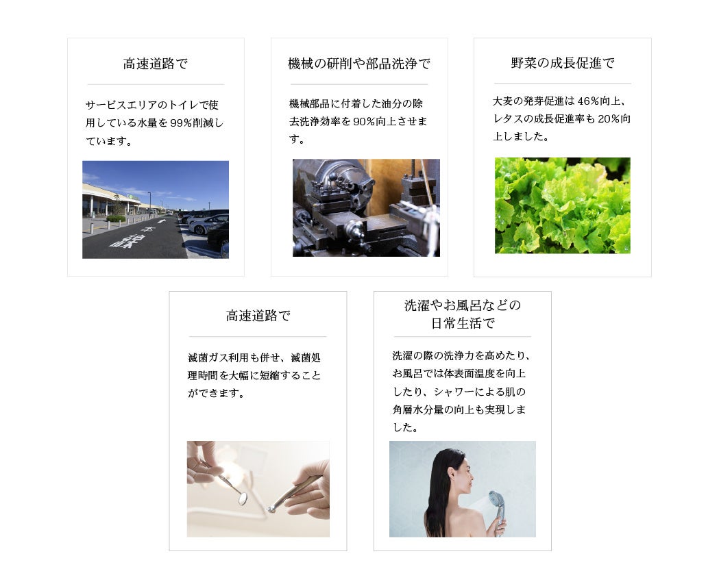 〇肌にうるおいを与える水の中に充満したウルトラファインバブルとマイクロバブルが肌にうるおいを与えます。