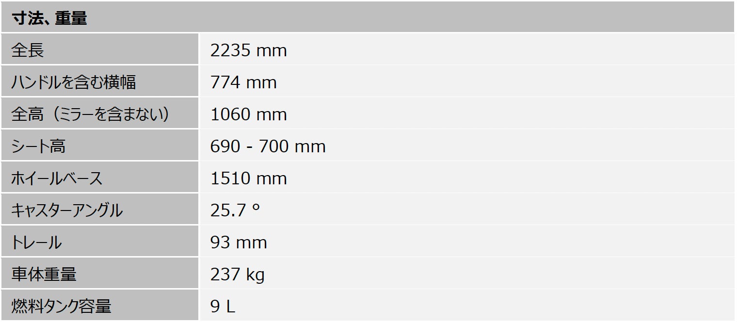 トラクションコントロールは、どんなコンディションでも安定性とコントロール性を確保し、スタイルを損なうことなく信頼性を高めます。新しいマルチファンクション・ビュレットスタイル・リアライトは、中央のリアライトの必要性をなくし、バイクのクリーンでミニマルな外観を保ちながら、保安部品としてのフル機能を提供します。