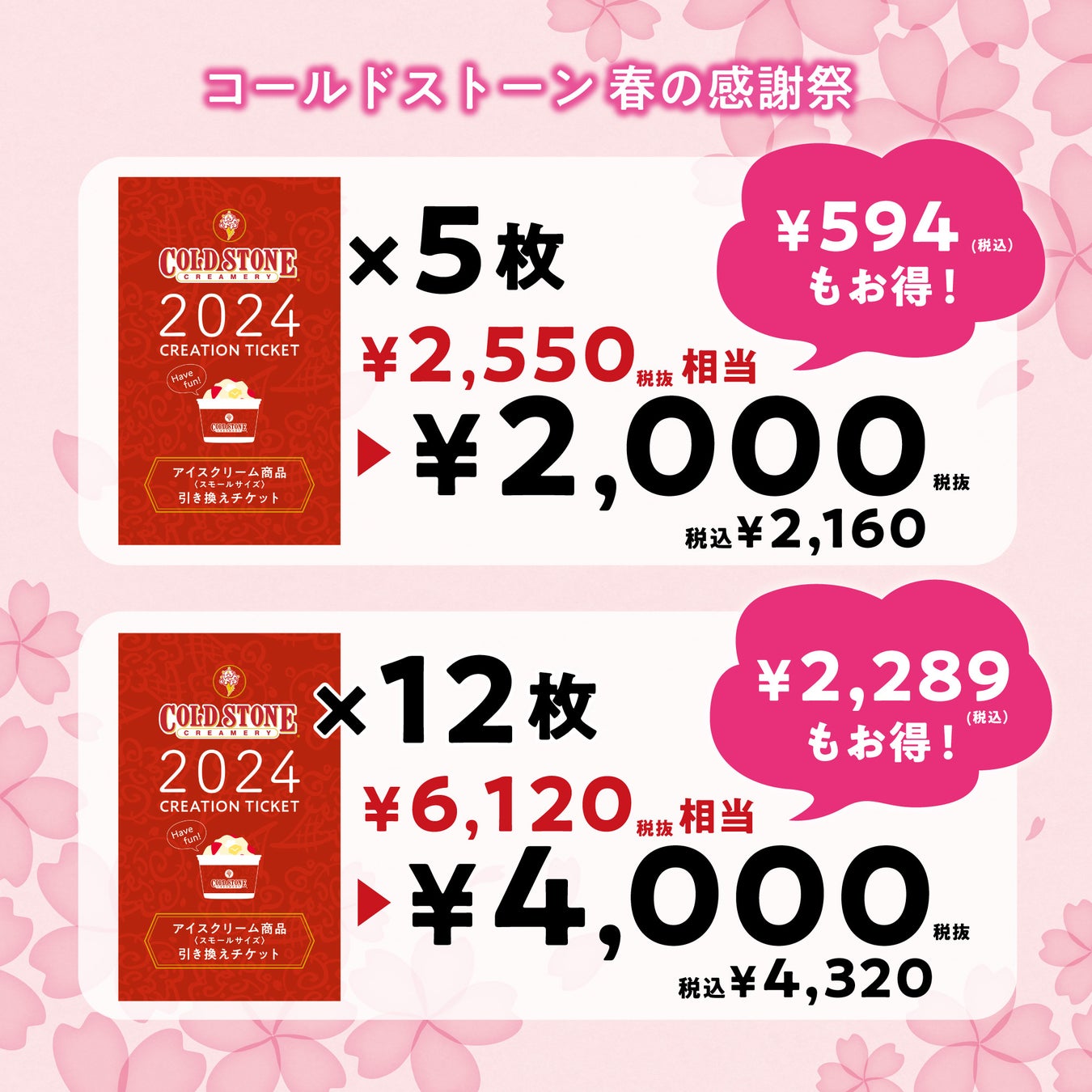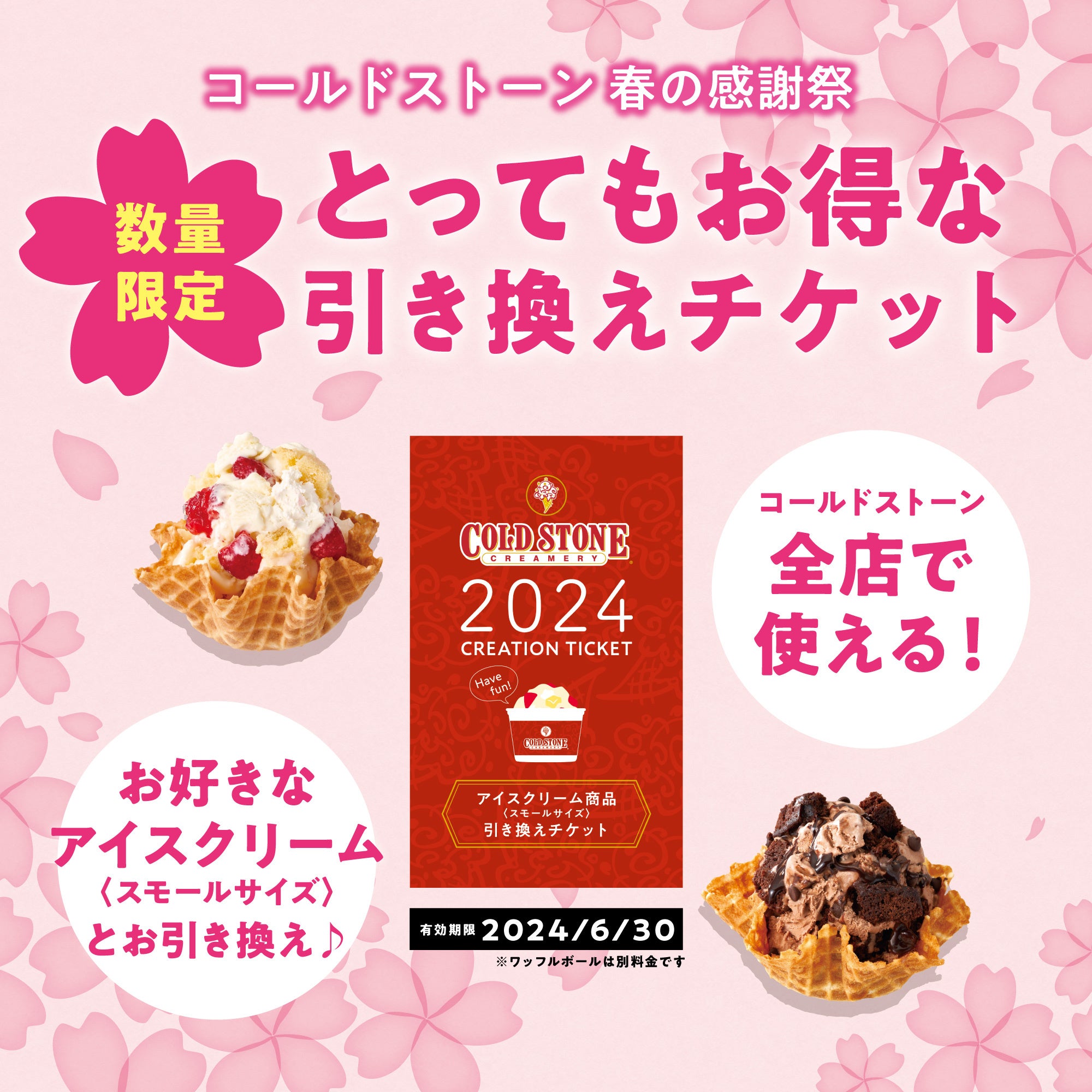 【コールド・ストーン・クリーマリー / 春の感謝祭】お好きなアイスクリームをお得に! “とってもお得な引き換えチケット” 数量限定、3/15発売!!