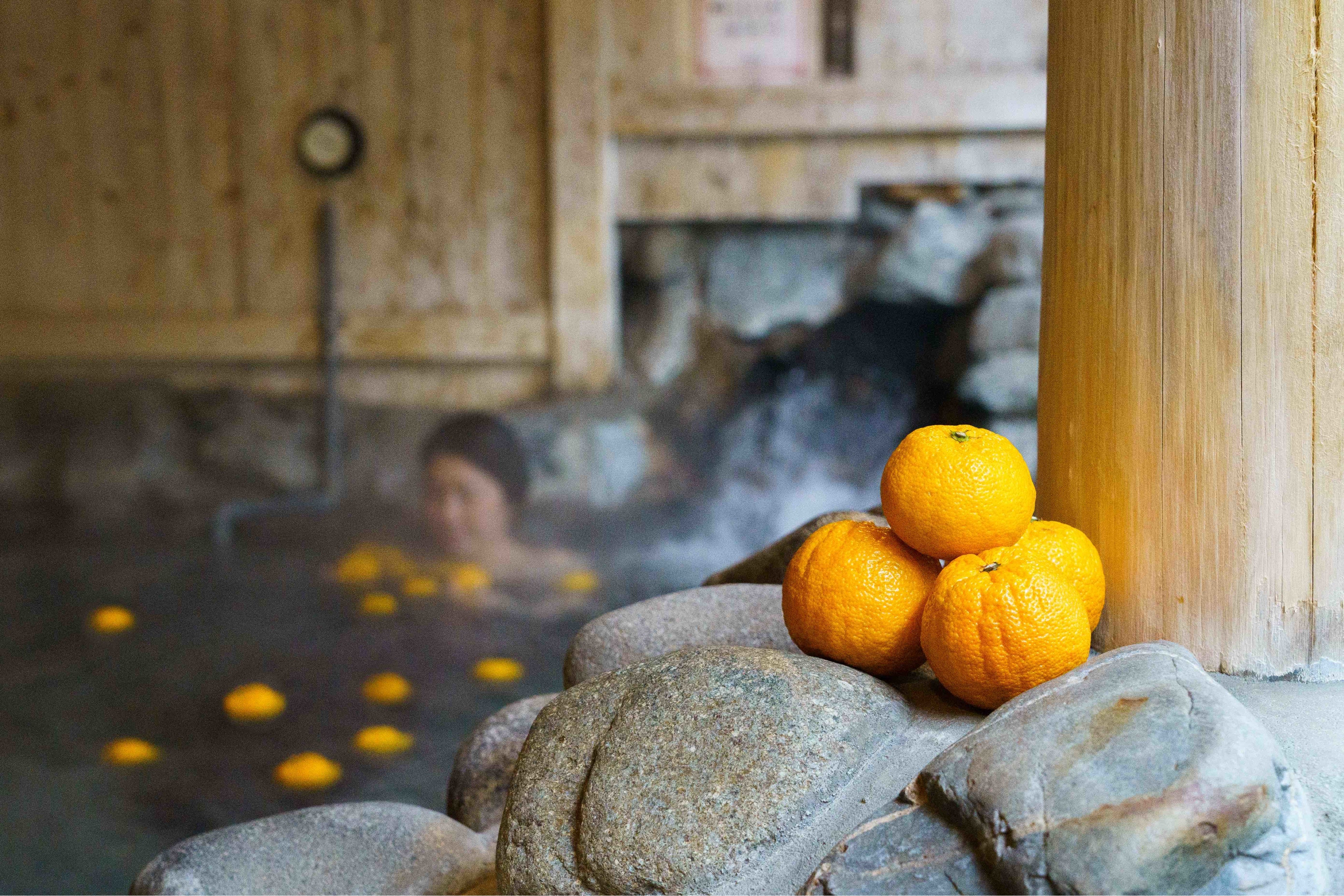 邪を払う幻の果実「じゃばら」で花粉とコロナ除け。昭和レトロな温泉銭湯 玉川温泉で「じゃばら風呂」を開催