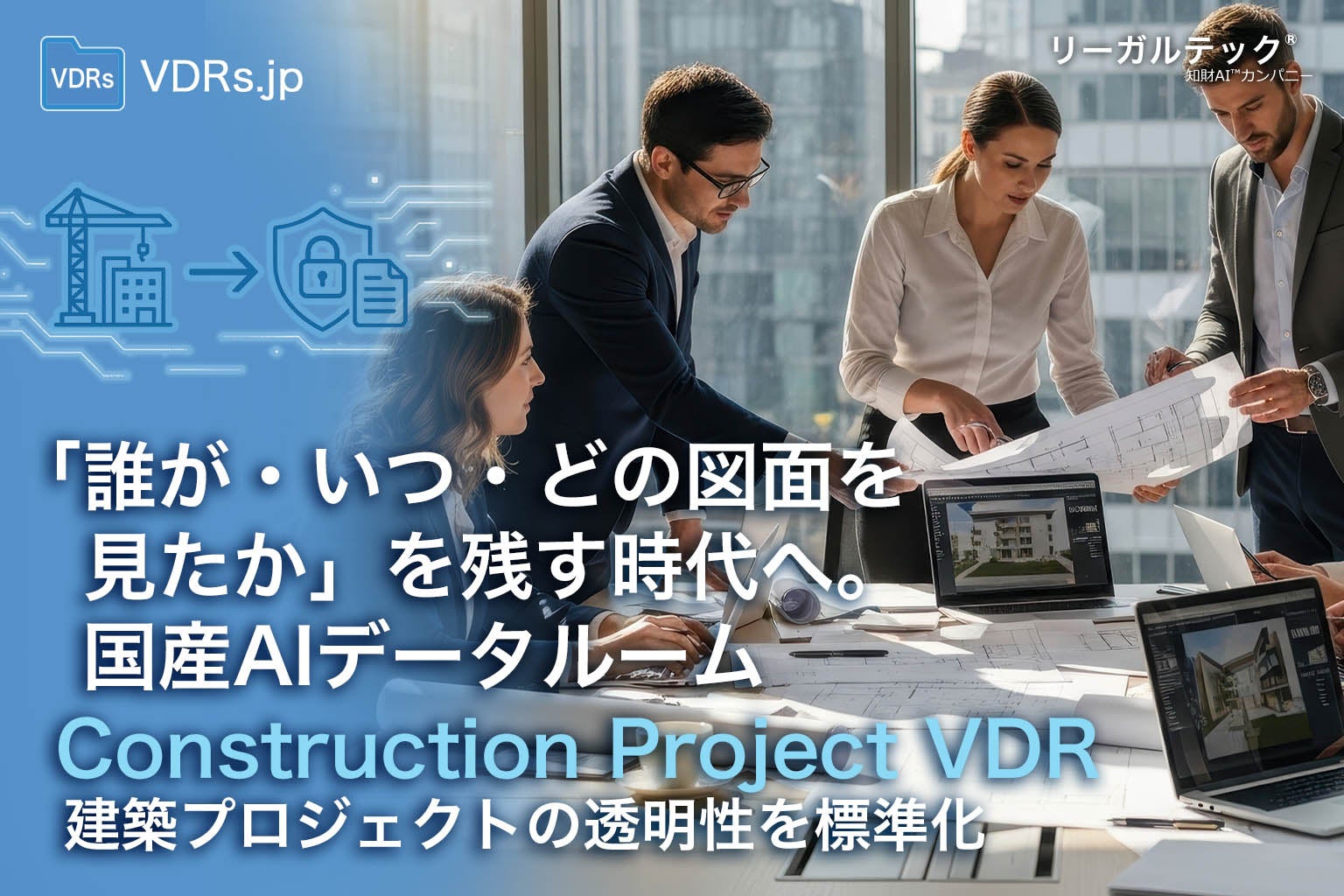 リーガルテック株式会社(本社:東京都港区、代表取締役社長:平井智之)は、建築・建設プロジェクトにおいて扱われる図面・契約書・工事資料などの機密情報管理を高度化する国産バーチャルデータルーム「リーガルテックVDR」を提供します。建築現場で増大する情報共有の負荷とリスクを、安全性と効率性の両面から解決します。