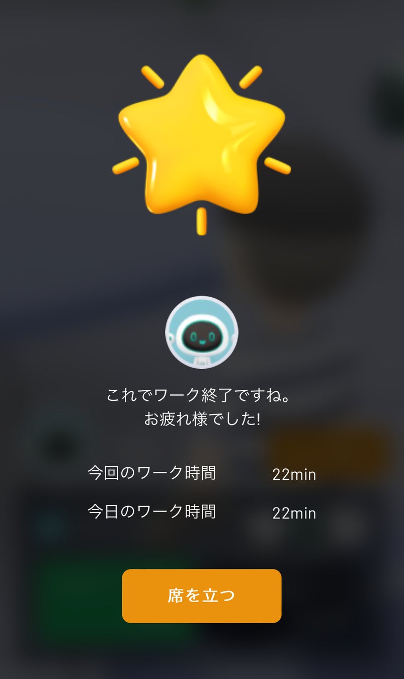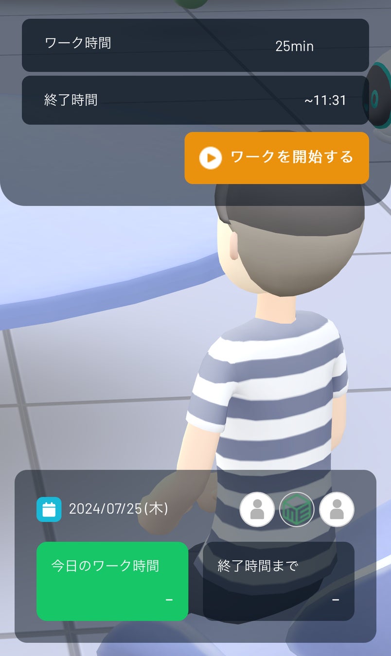 1セッション「25分間+5分休憩」、「50分間+10分休憩」の2パターンのタイマーを利用できます。ポモドーロ・テクニックと呼ばれる時間管理術を採用しており、25分単位のワークセッションと短い休憩を繰り返すことで効率よくワークに取り組むことができます。
