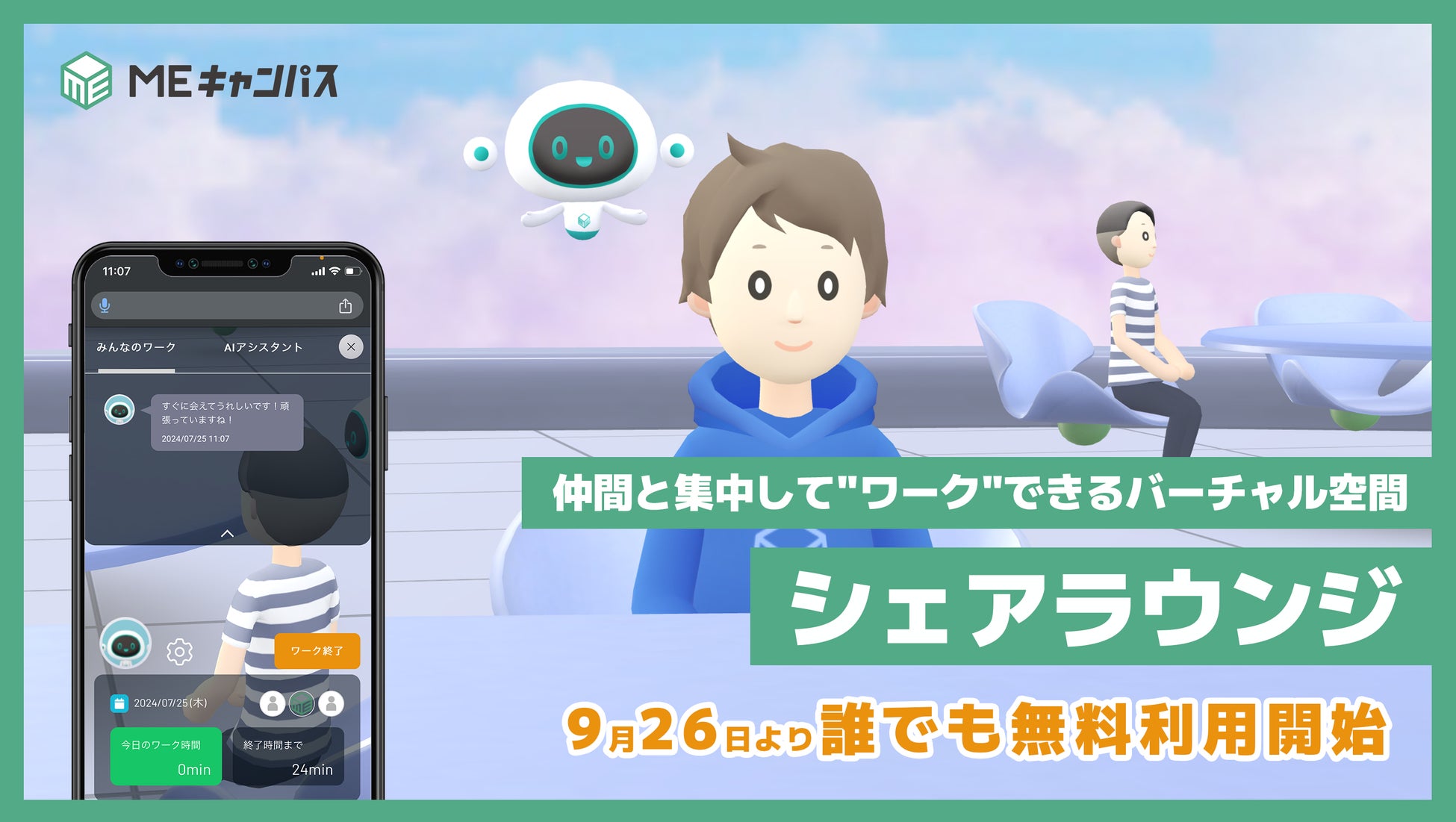 「MEキャンパス」、仲間と集中して“ワーク”できるバーチャル空間『シェアラウンジ』を公開