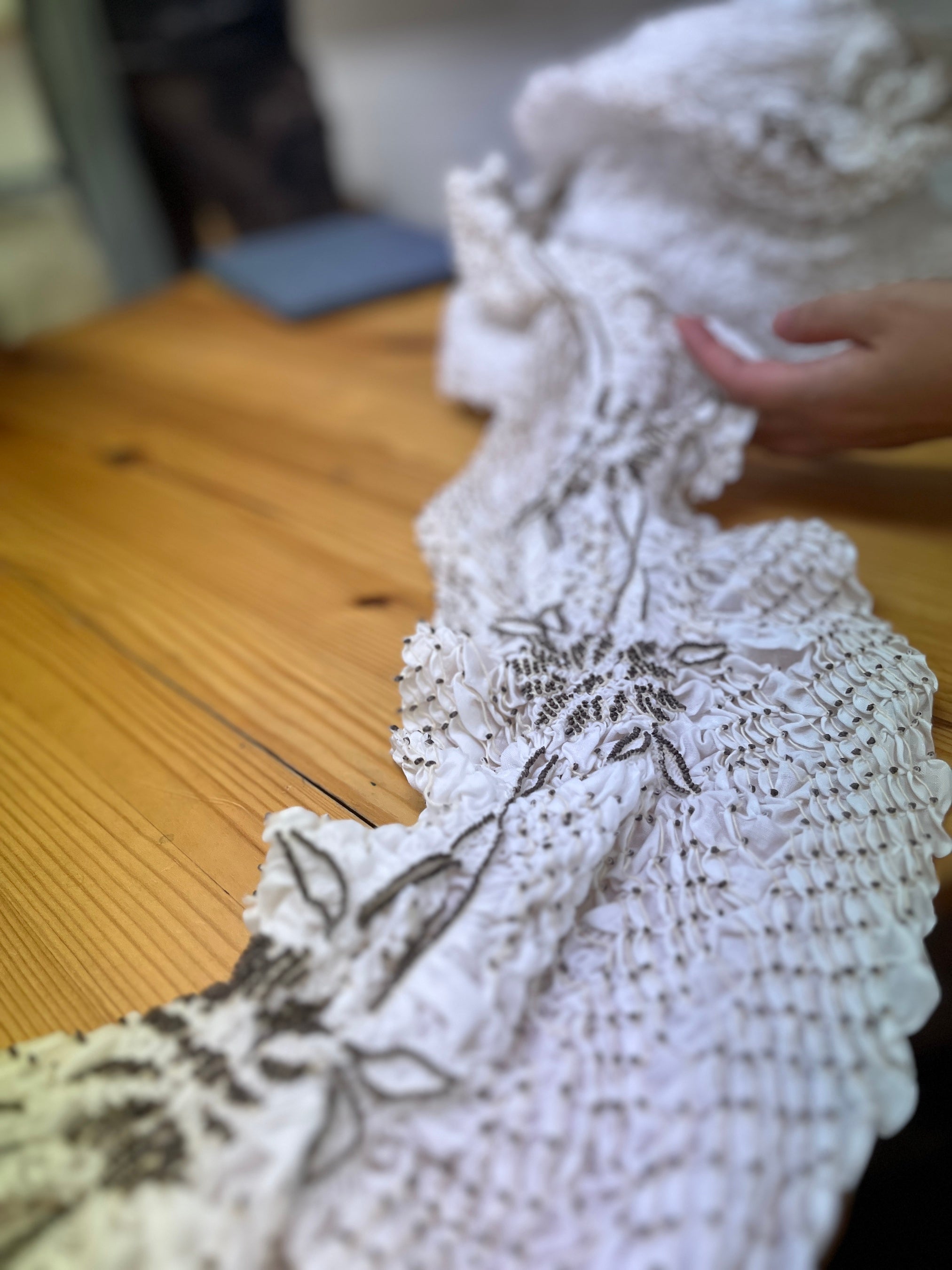 職人による絞りが施された白生地を、流し染めの技法で染め上げる体験福袋。