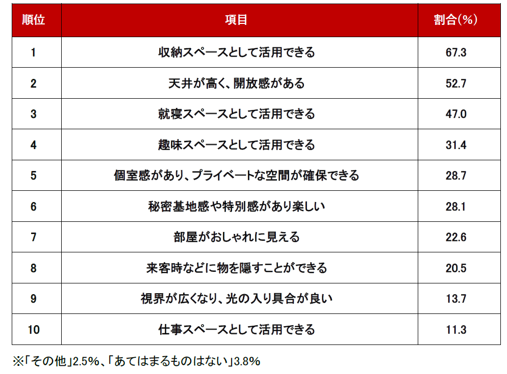 <調査結果>不動産のプロが選ぶ!「ロフト付物件のおすすめポイント」ランキング