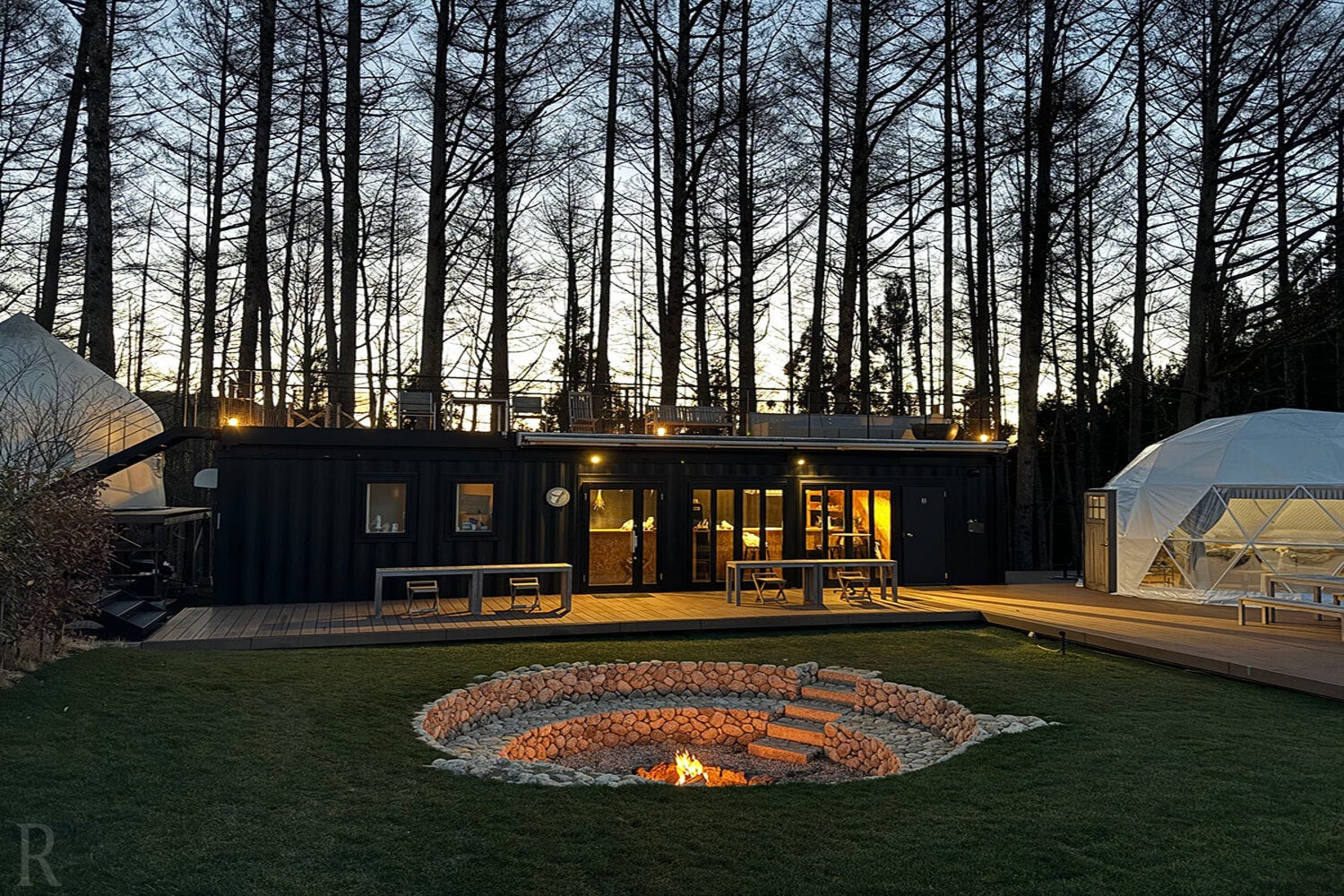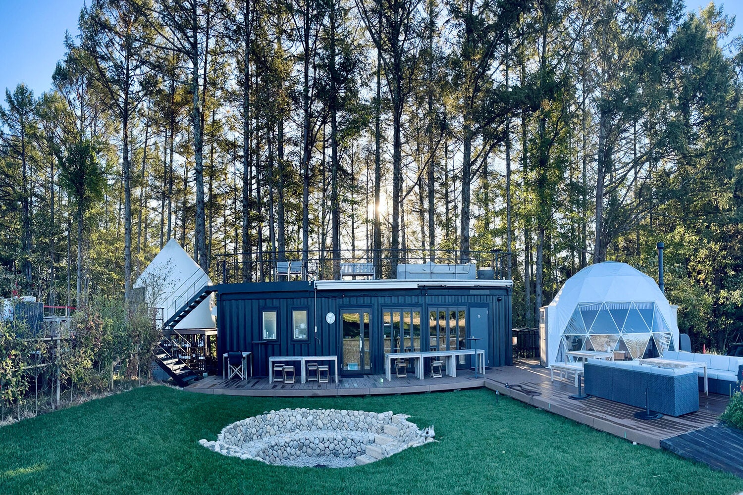 ドームテント、インスタントハウス、エアストリームの個性豊かな宿泊棟は、屋内で過ごす安心感を持ちながら、大自然の気配・音をすぐそばに感じることができます。