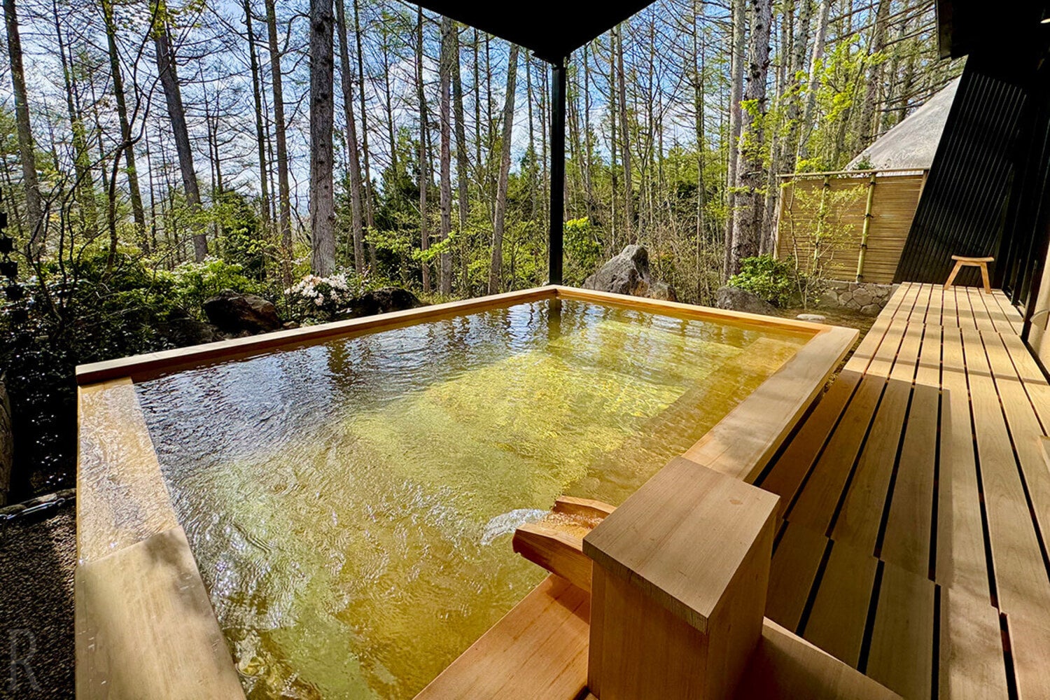 森の中を浮遊する至高の貸切露天風呂