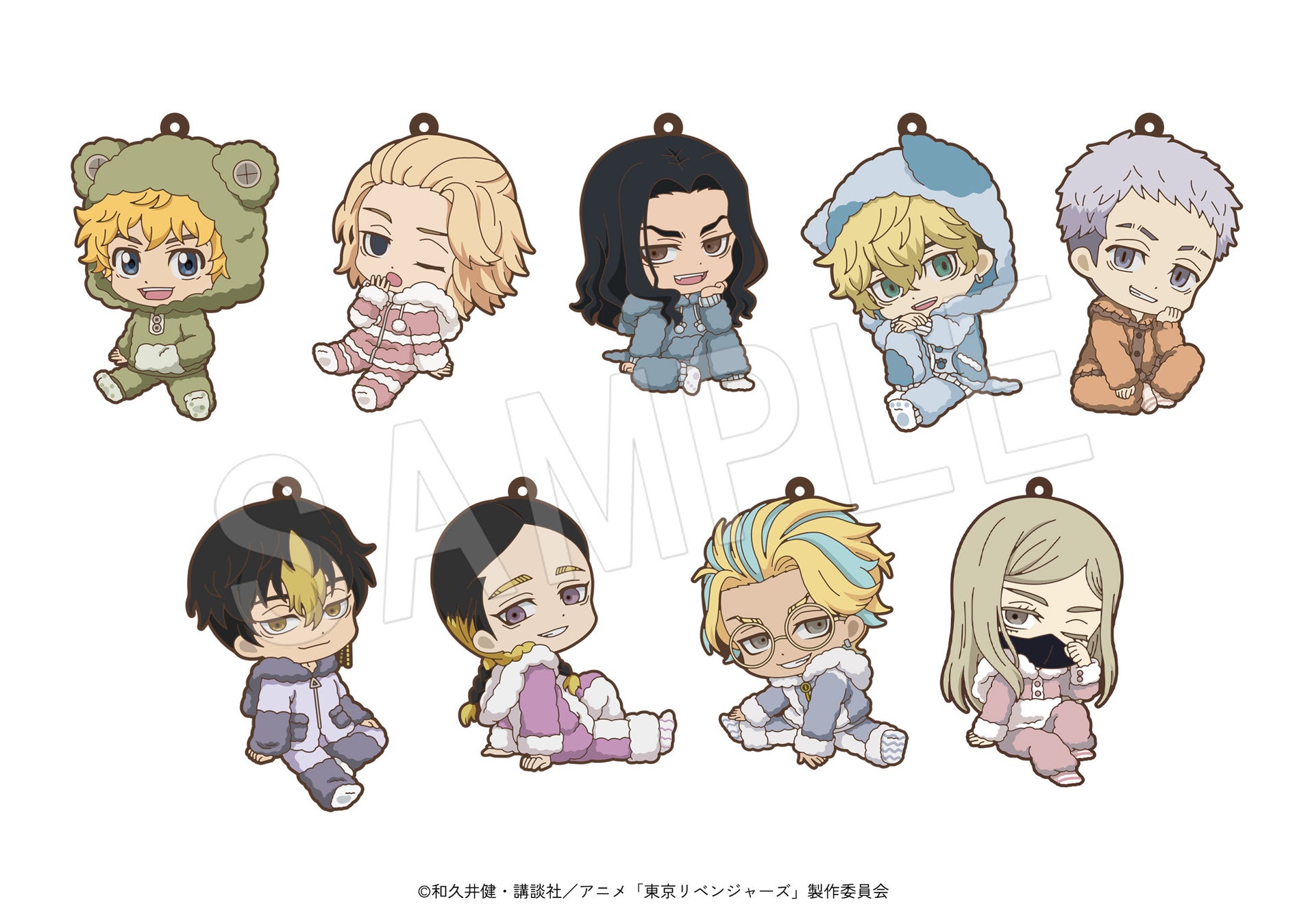 TVアニメ『東京リベンジャーズ』より、ぺたんと座ったポーズがかわいい「ぺたん娘」シリーズのラバーストラップ「もこもこルームウェアver.」が登場!花垣武道、佐野万次郎、場地圭介、松野千冬、三ツ谷隆、半間修二、灰谷蘭、灰谷竜胆、三途春千夜の全9種をラインナップ!