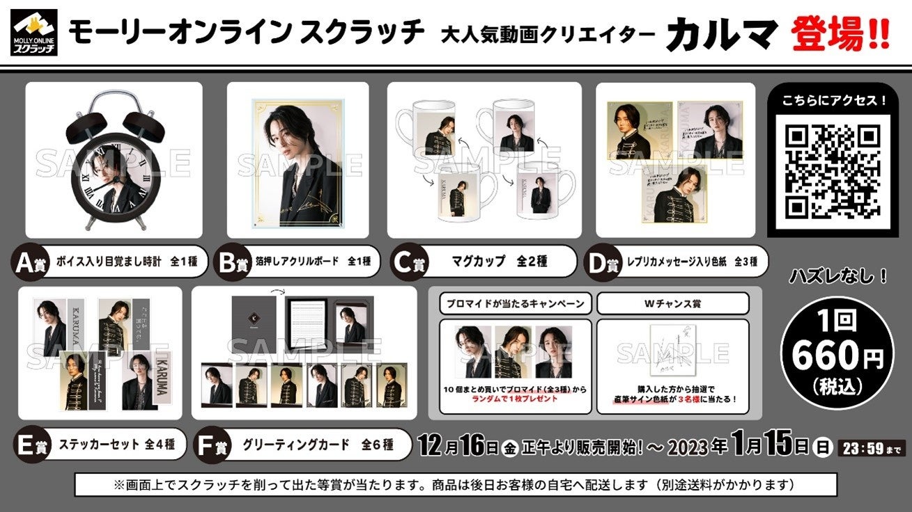 大人気動画クリエイター『カルマ』完全撮りおろしカットのプライズが初登場! 『カルマ』の限定プライズやカプセルトイ、オンラインスクラッチが12月16日(金)より展開開始
