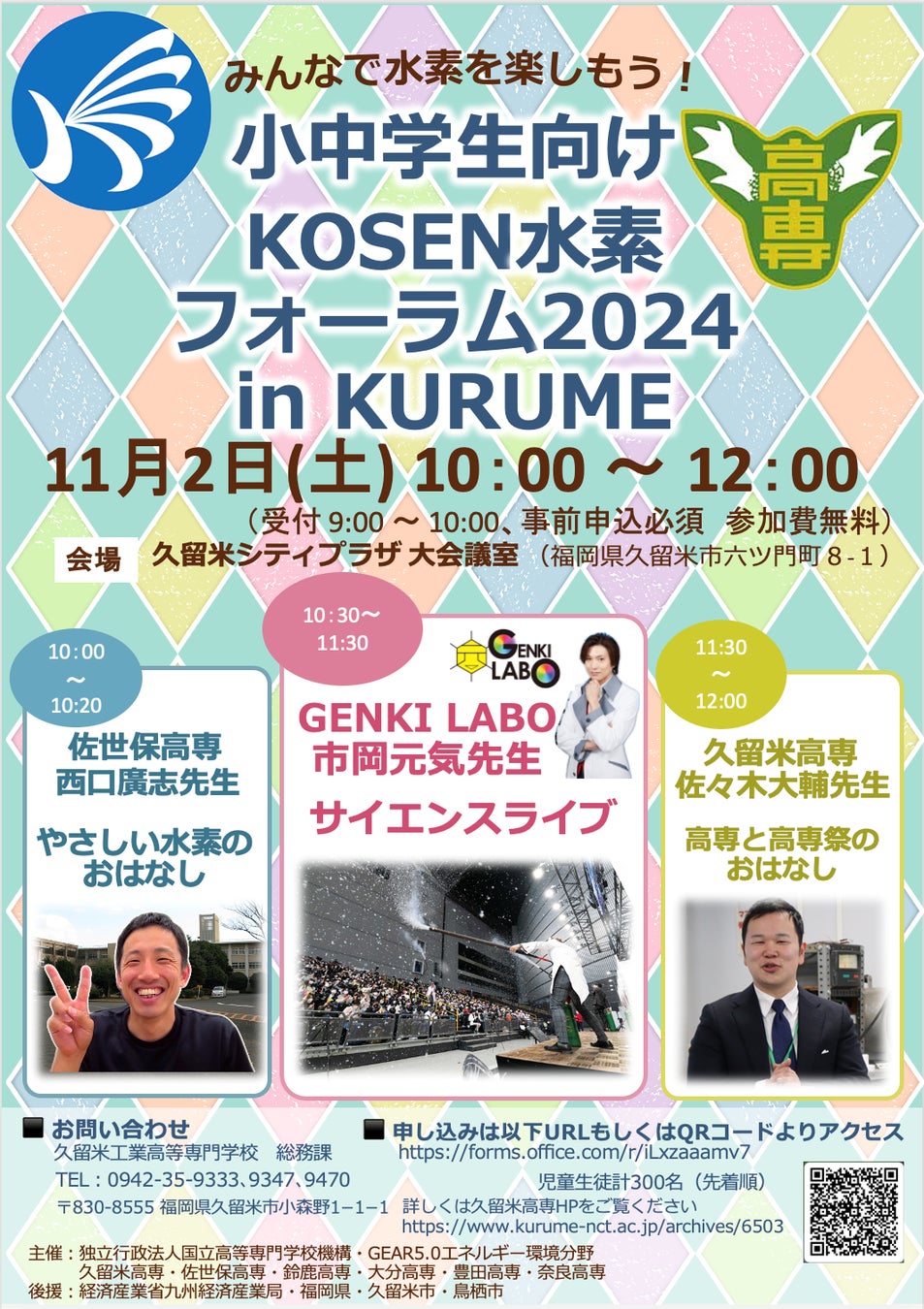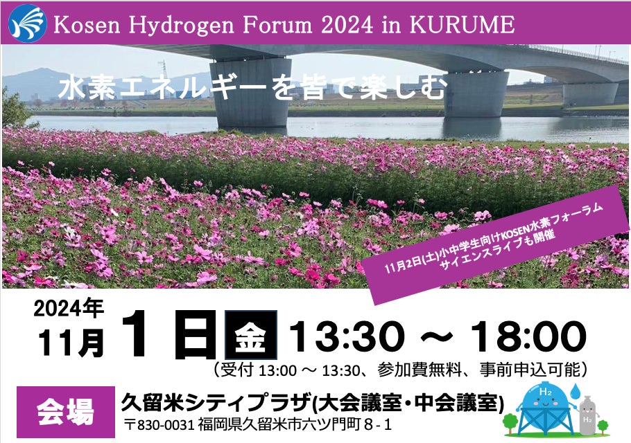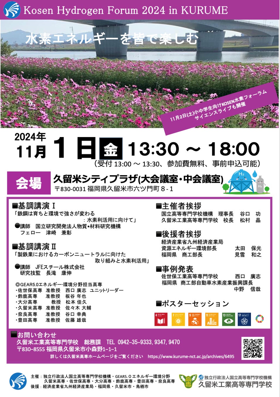 11月1日、2日にGEAR5.0エネルギー・環境ユニット主催「KOSEN水素フォーラム2024 in KURUME」を福岡県久留米市で開催します!