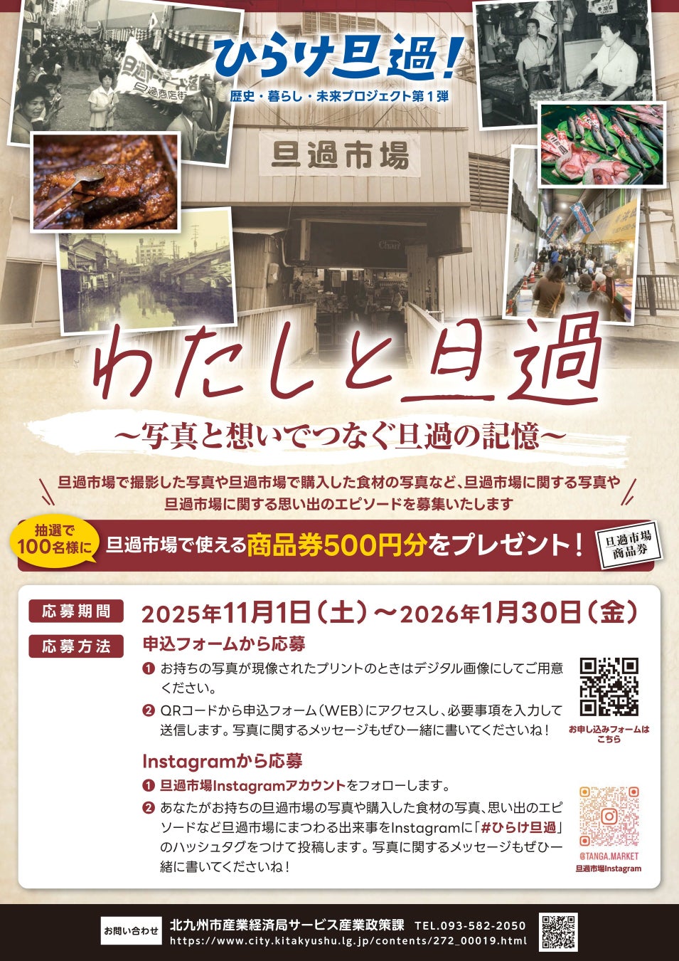 ぜひ、その一枚を提供してください。 再整備が進み、景色が変わりゆく旦過市場において、皆様が昭和・平成の日々の中で撮られた写真は、何よりも得難い「街の財産」です。