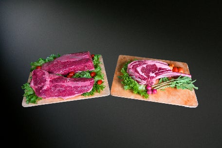 BBQに最適な商品の第一弾!注目度MAXの国産牛骨付きロース肉「トマホーク」、そして1頭から数キログラムしか取れない厳選希少部位のトンビとミスジ(カタ)の2品を加えたBBQ3点セット。グラム約400円強程度の単価で楽しめるのは10周年ならでは!