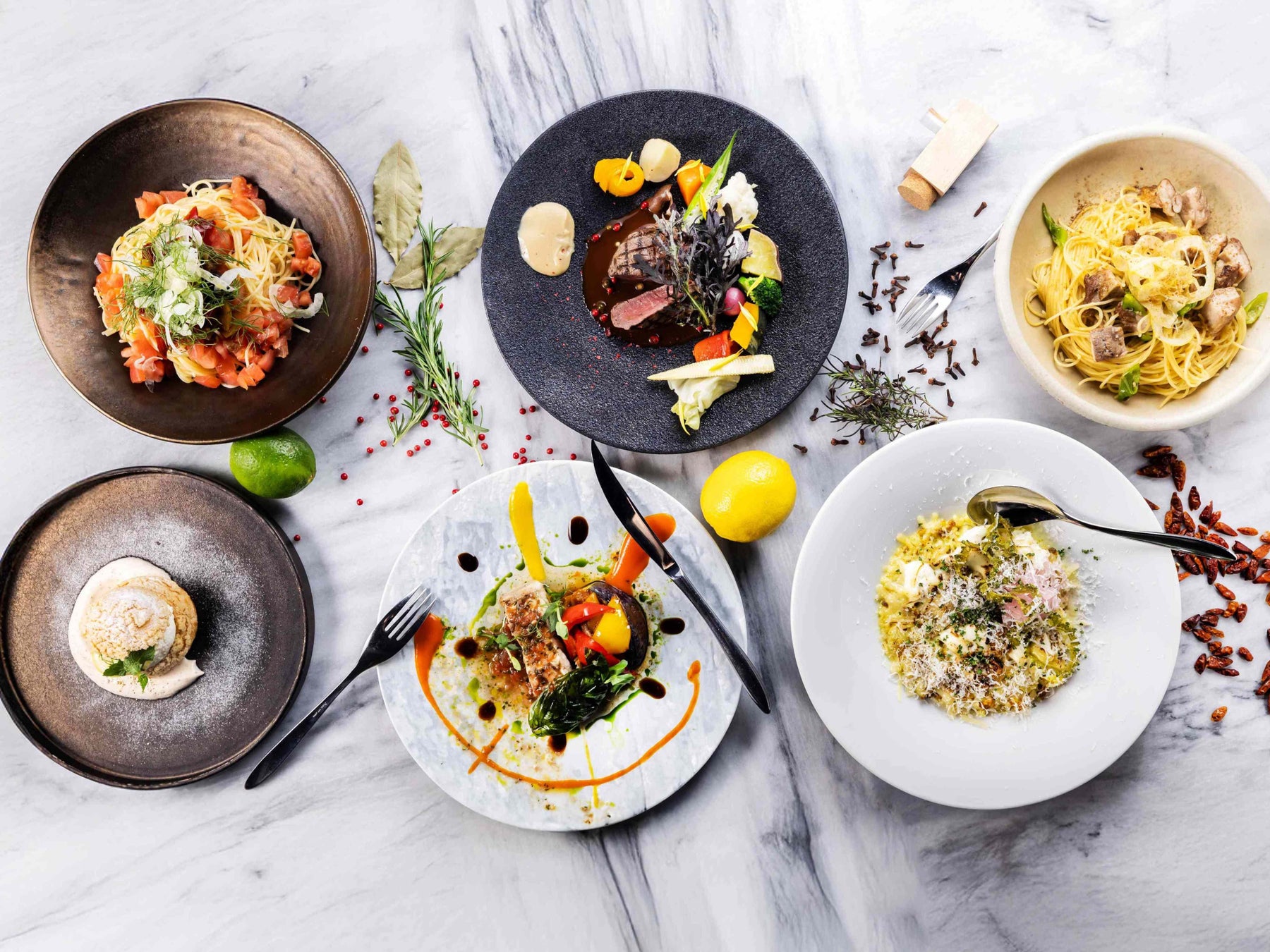 KIHARU Brasserieのランチタイムには、京都産鶏もも肉と山椒を使ったレモンパスタや、グリンペッパーソースの効いた北海道産牛フィレのグリルなどスパイスを効かせた夏メニューが。唐辛子ソースのピリ辛も選べる夏野菜の冷製パスタ、焦げたモッツァレラがアクセントになるカレー風味のリゾットなど初登場メニューもぜひお楽しみください。また、月替わりの本日デザートには、サクサク、ザクザク食感が楽しいレモンアイスシューが、サマードリンクには、ラムネ“サワー”を取り揃えてます。