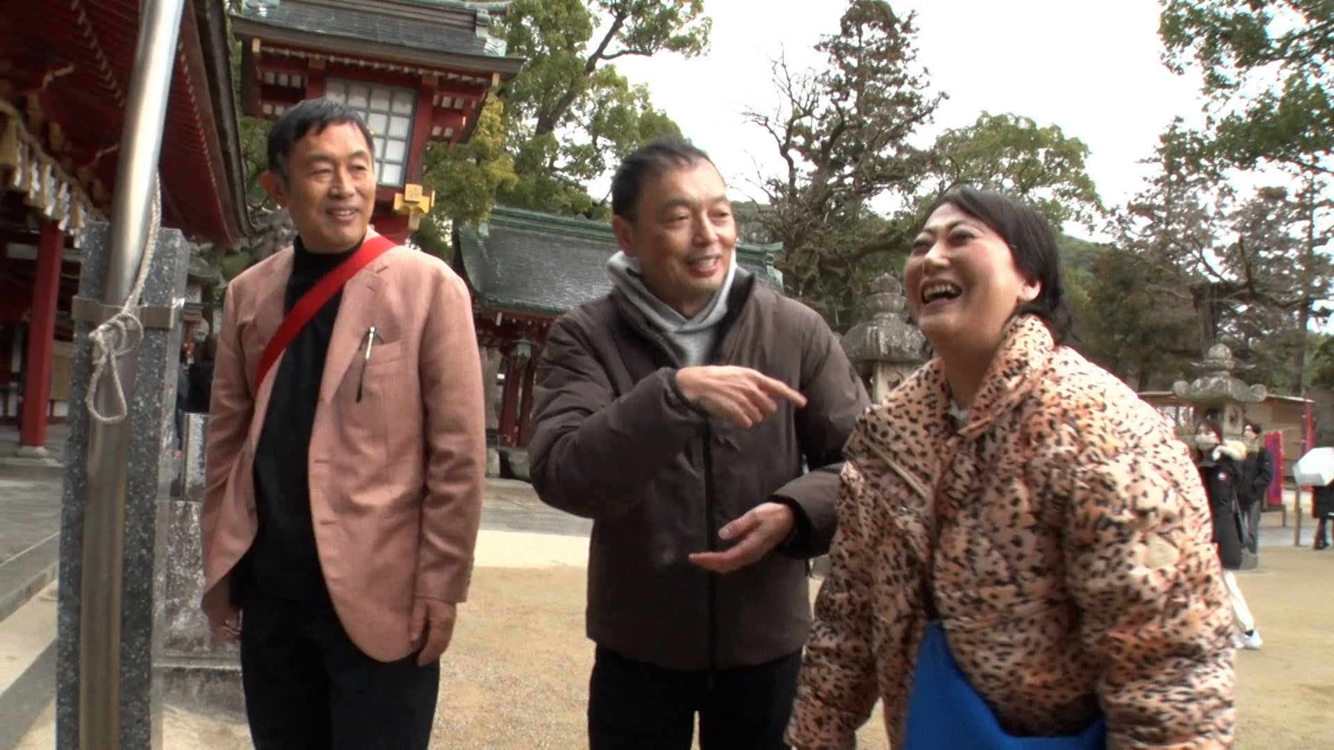 旅の出発地点は、福岡・天神駅。おなじみの友近…と思いきや、何やら声の様子がおかしい。「今日、声こんなん」。のどの不調で声が出づらいといい、さっそく礼二と即興漫才を繰り広げ…。最初の目的地は、学業の神でおなじみの太宰府天満宮。太宰府をイメージしたラッピングが施された観光列車・旅人(たびと)に、さっそく乗り込む。車内は車両ごとに開運のテーマが設定されている凝りようで、祈願箱も設置。願いごとを書こうとする2人だが、備品のボールペンに友近がクスクス笑い。その理由とは?
