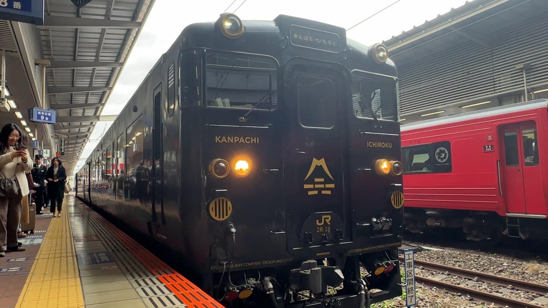 一行は次なる観光列車に乗るべく、博多へUターン。今度はJR九州が誇る観光列車「かんぱち・いちろく」に乗り込み、由布院へ!ゆふ高原線の敷設に尽力した2人の名士の名を冠した列車で、レトロ感と重厚感あふれる黒の車両が到着すると、礼二は「うわあ~!すごいな、これ」と声を張り上げる。車内では、地元の日田杉を使った豪華な二段重の弁当箱に、色とりどりの食材。内藤も「彩りがあるから飽きへんよね」と感心する。