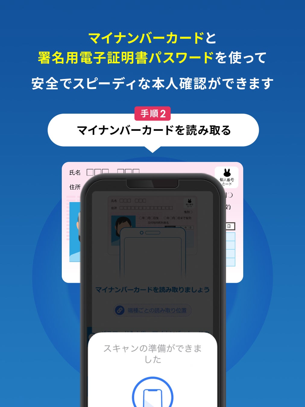 従来までの本人容貌・免許証・ランダム画像等を撮影する犯罪収益移転防止法に準拠した本人確認に加え、マイナンバーカードのICチップを活用した公的個人認証も可能になります。
