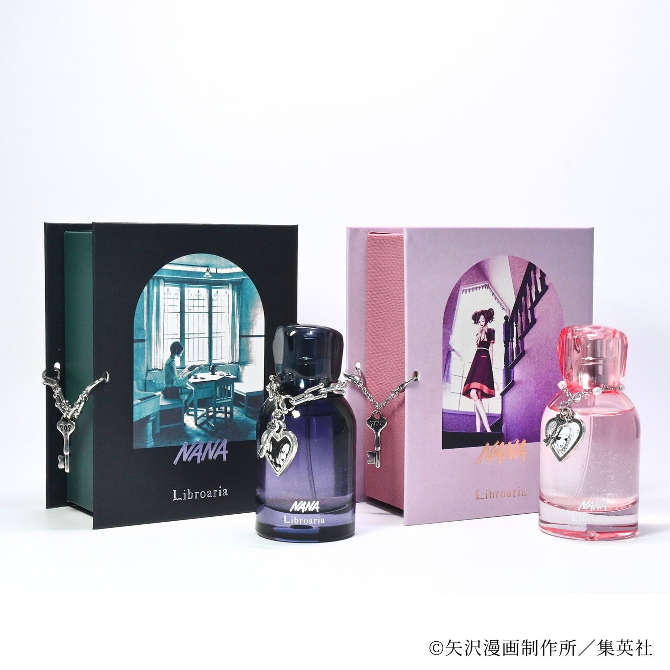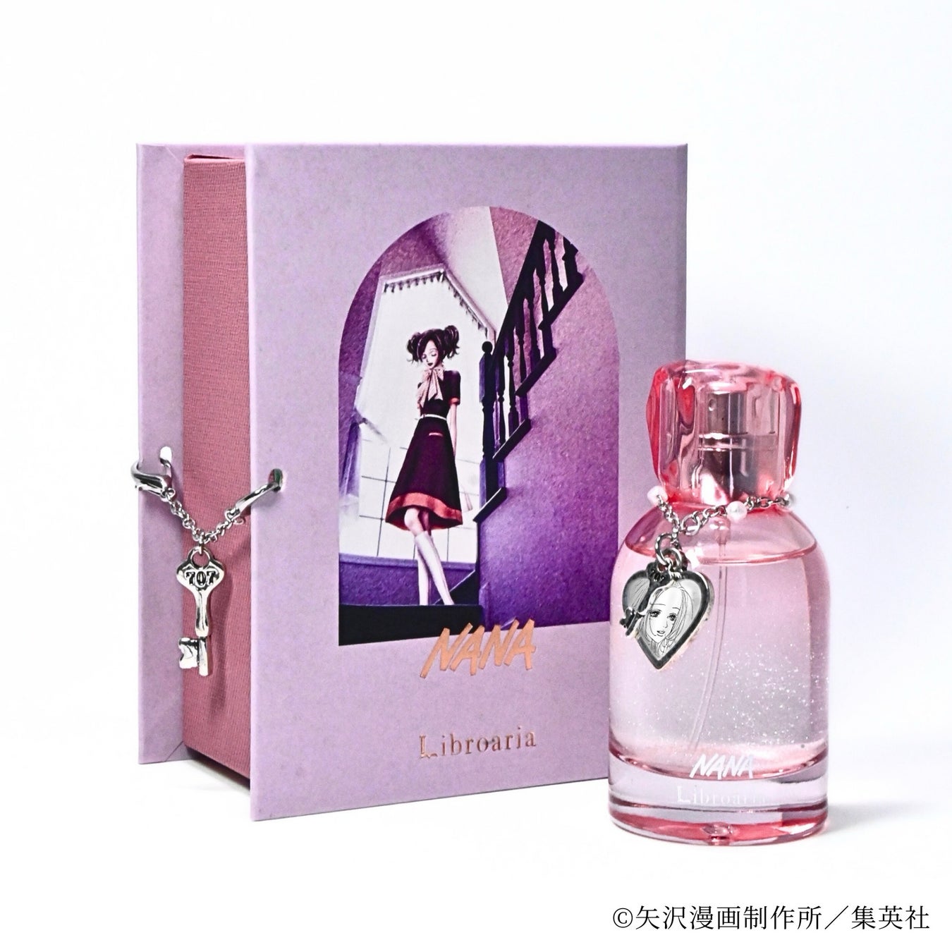 「本を読む所作や空間まで彩りたい」という願いを形にする、出版社生まれのコスメブランド「Libroaria」。今回のPOP UP SHOP では、矢沢あいの名作『NANA』とコラボレーションした香水を発売します。ヒロイン「大崎ナナ」と「小松奈々」からインスピレーションを得た2つの香りは、振るたびにキラキラと輝くラメ香水仕様で、707 号室の鍵のチャームをまとっています。
