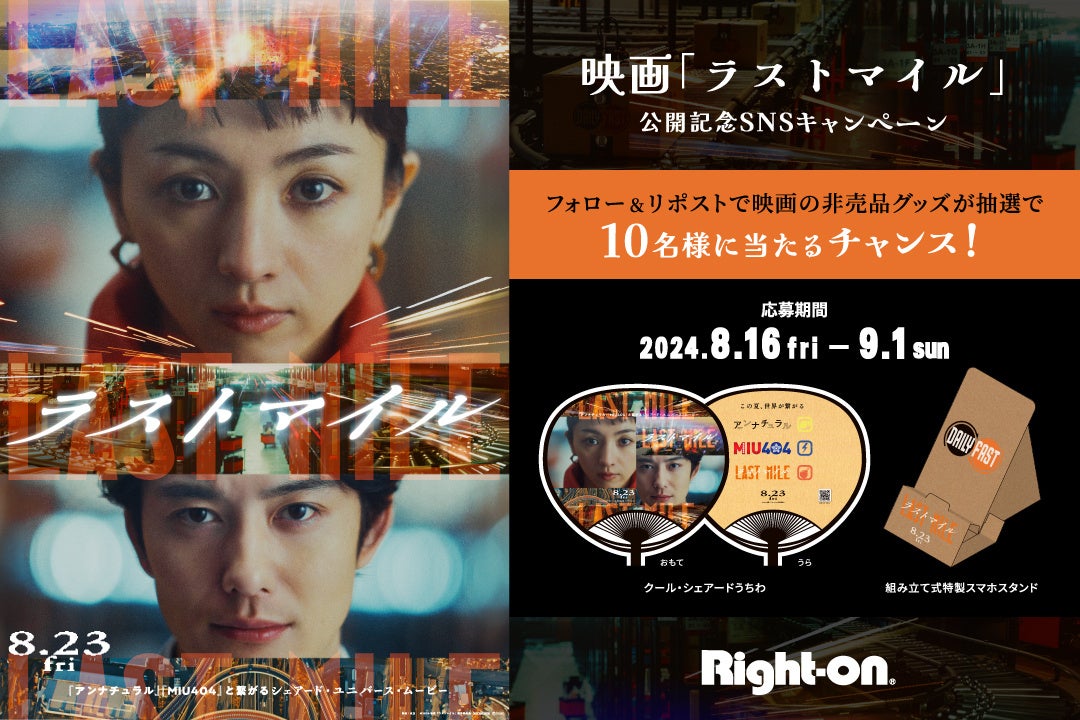 株式会社ライトオン(所在地:東京都渋谷区、代表取締役社長:藤原祐介)は、映画『ラストマイル』の公開を記念し、2024年8月16日(金)より、ライトオン公式Xにて映画の非売品グッズが抽選で10名様に当たるプレゼントキャンペーンを開催いたします。スペシャルなグッズとなっておりますので、ぜひご参加ください。