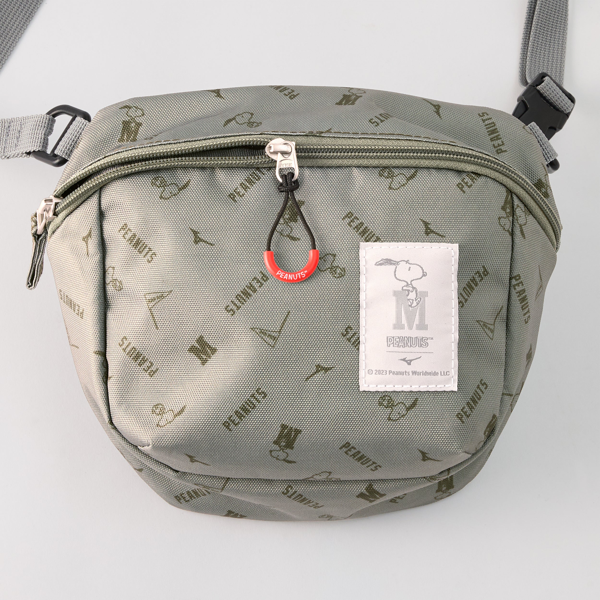 ちょっとしたお出かけから旅先でも使いやすいショルダーポーチです。全面にスヌーピーが散りばめられたオリジナル柄で、本体ファスナーにはスヌーピーの首輪をモチーフにした引手を使用し、MizunoのMとスヌーピーをデザインしたオリジナルロゴネーム入りです。