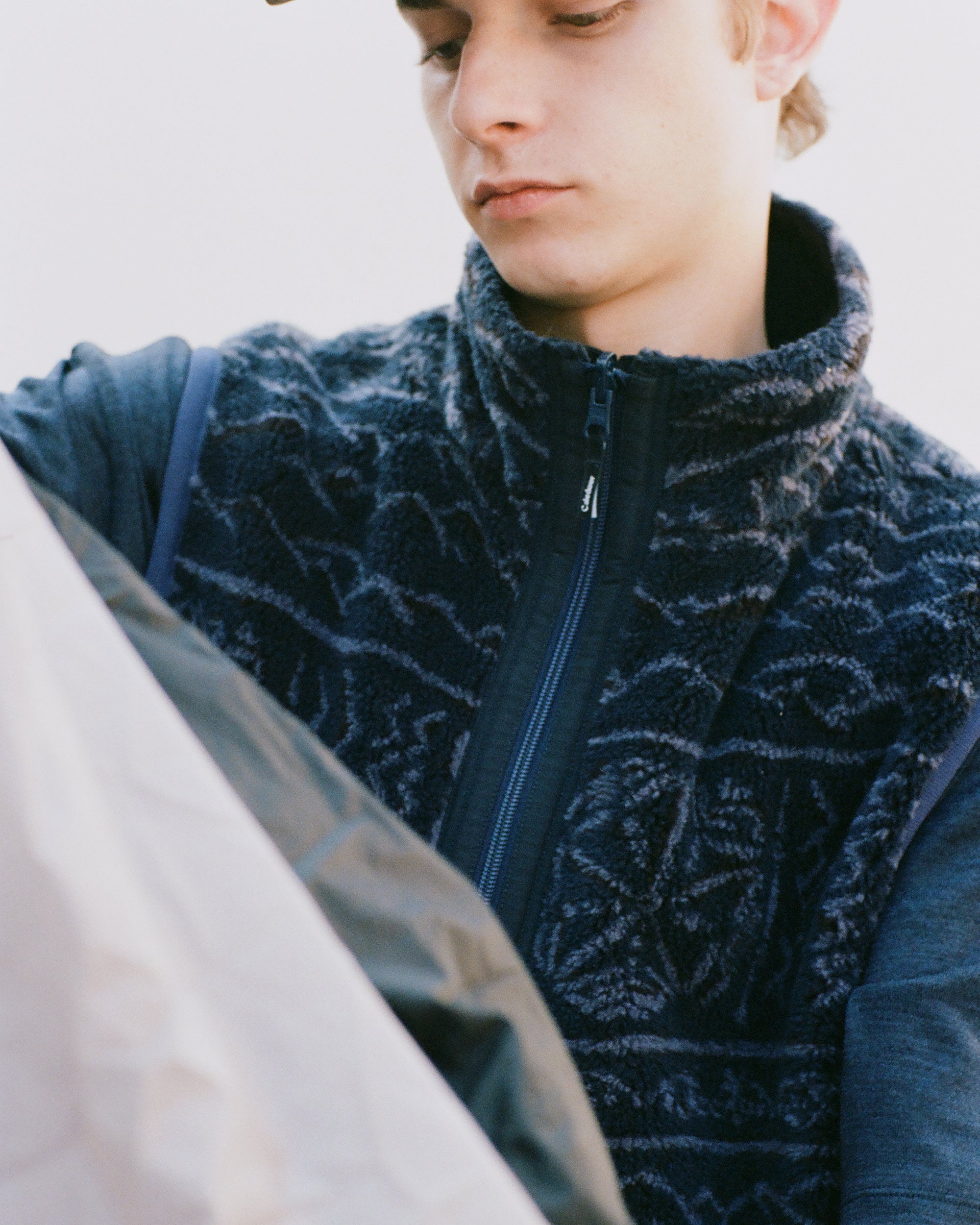 2023年秋冬コレクションでは、日常的な街歩きに適しているブリティッシュウールの英国製ニットウェアや、登山時の悪天候にも対応できる撥水素材×ジャカードボアを使用したリバーシブルのプルオーバーフリースやベストなどを展開しています。